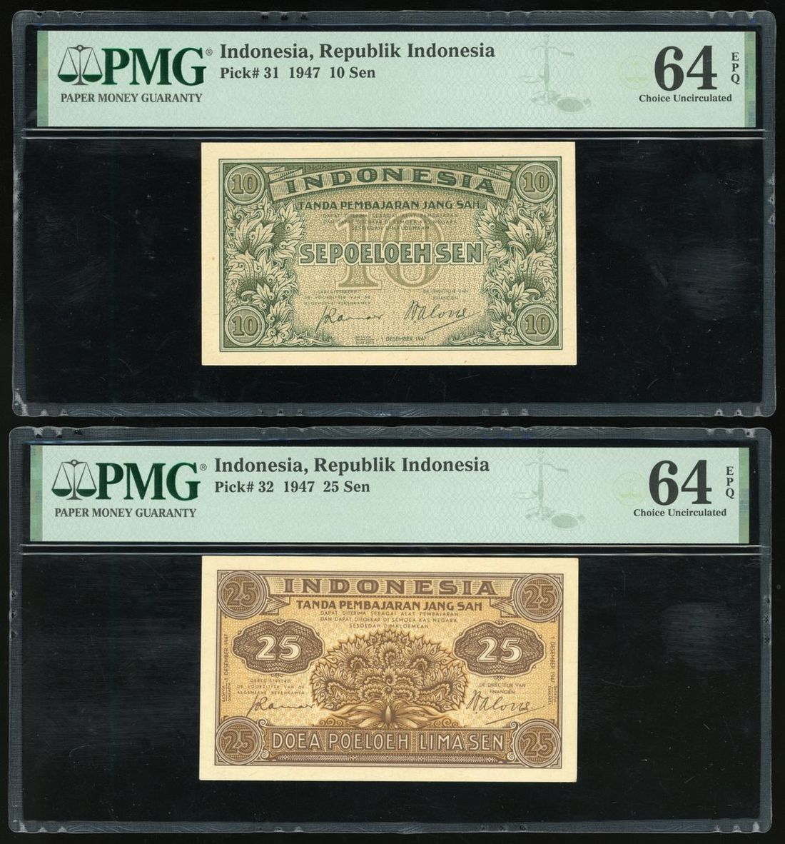 Netherlands Indies / Indonesia, a group of 4x including, -Indonesia, 10 and 25 sen, 1947,