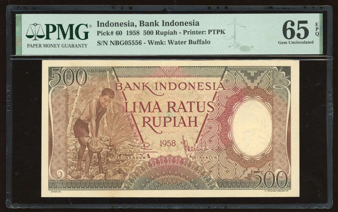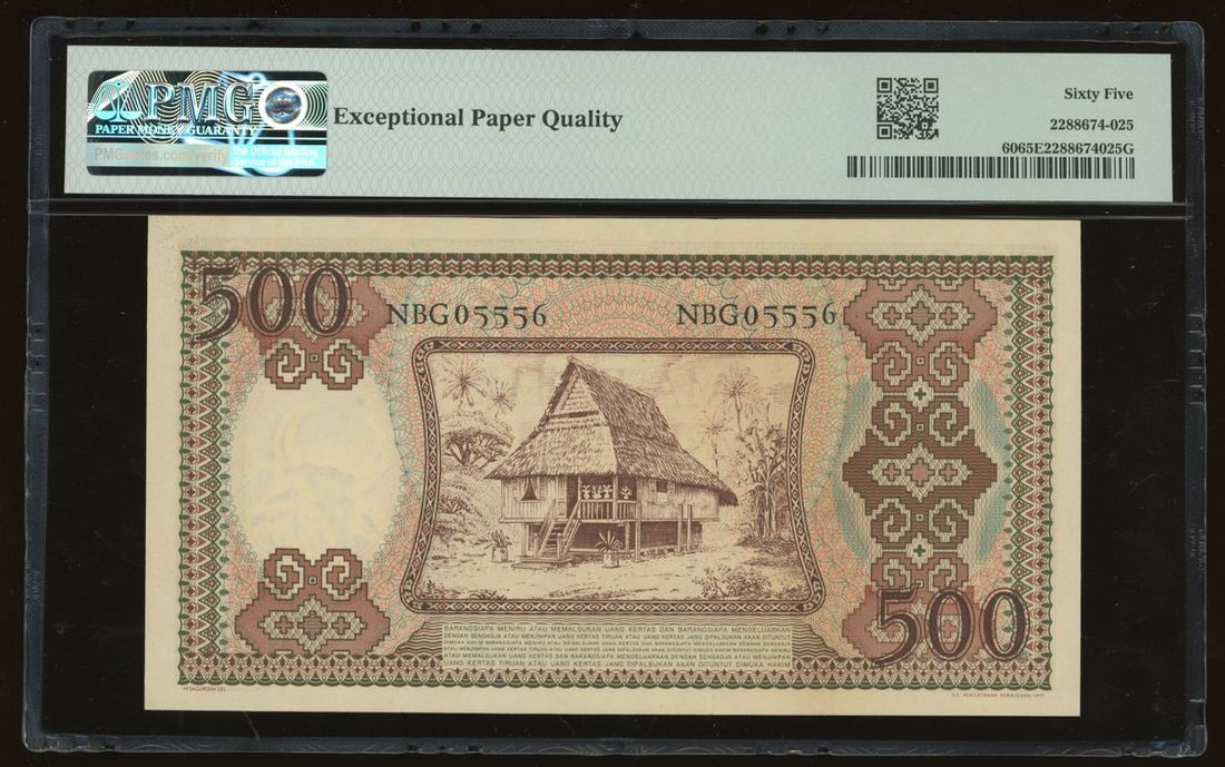 Bank Indonesia, 500 rupiah, 1958, serial number NBG05556, (Pick 60), PMG 65EPQ