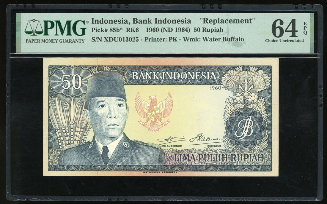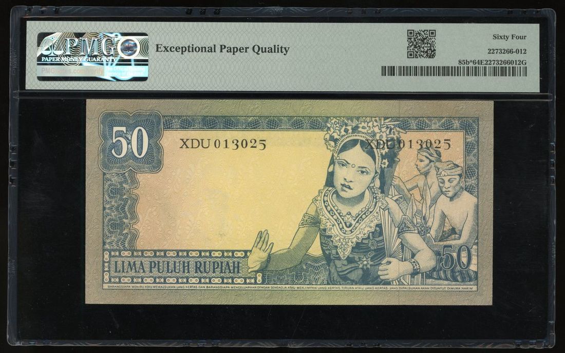 Bank Indonesia, replacement 50 Rupiah, 1960, serial number XDU013025, (Pick 85b), PMG 64EPQ Choice Uncirculated
