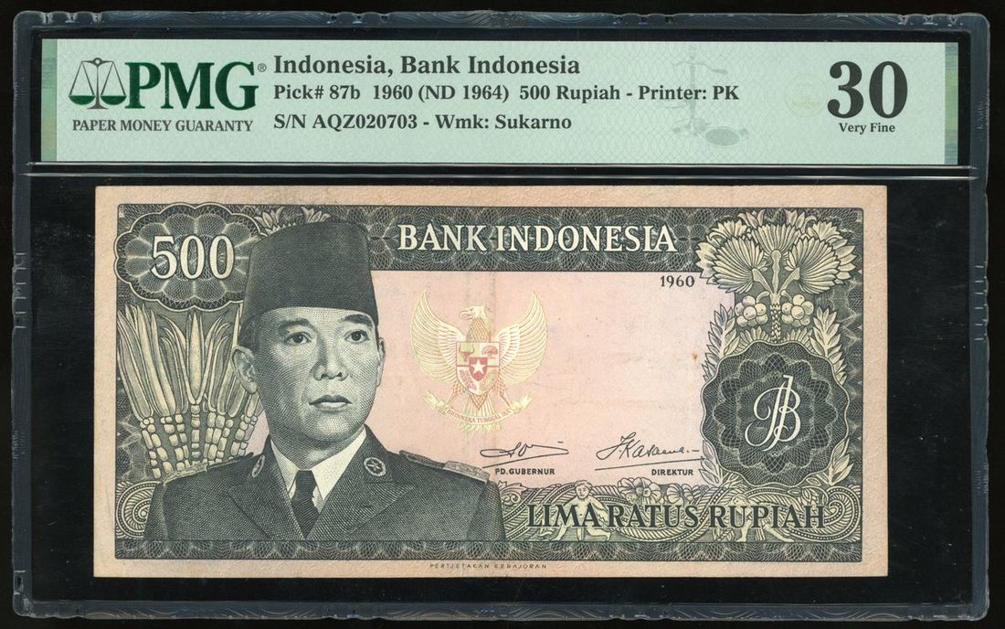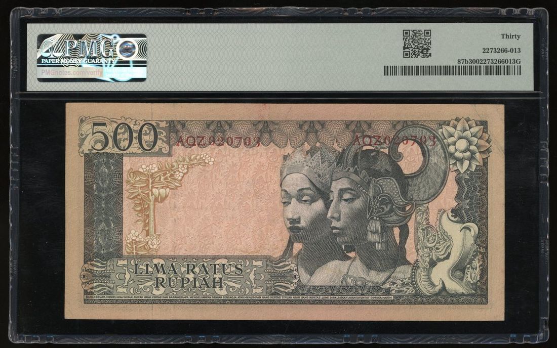 Bank Indonesia, 500 Rupiah, 1960, serial number AQZ020703, (Pick 87b), PMG 30 Very Fine