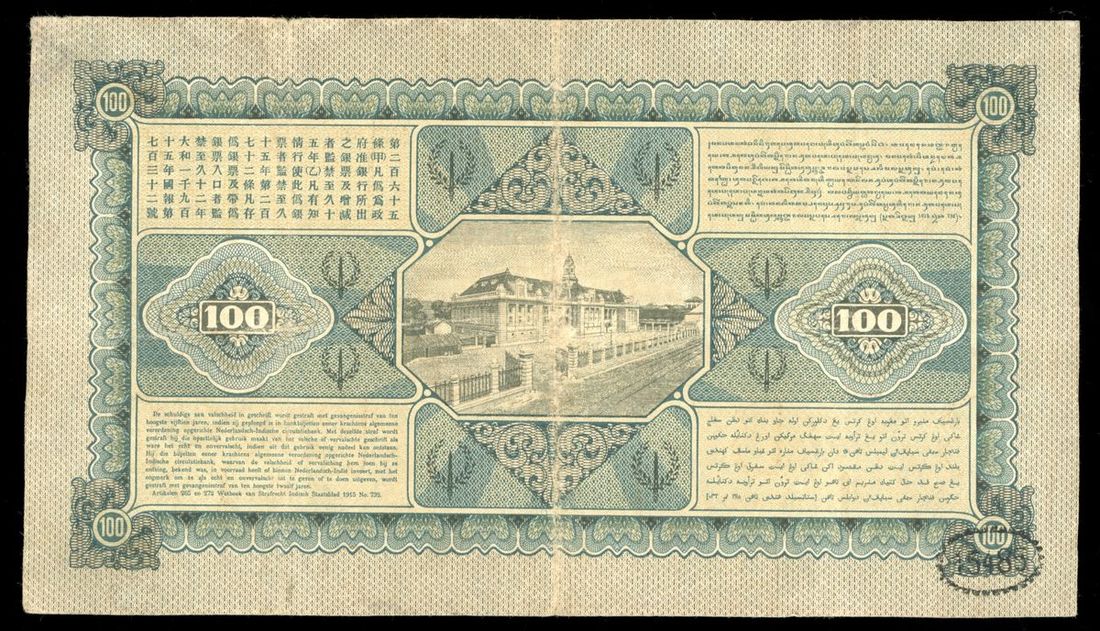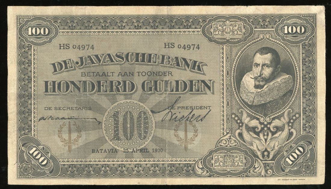 De Javasche Bank, Netherlands Indies, 100 gulden, 25.4.1930, serial number HS04974, (Pick 73c), minor split and small internal pinhole, very fine