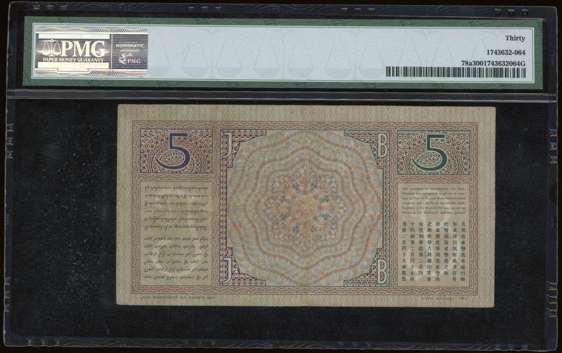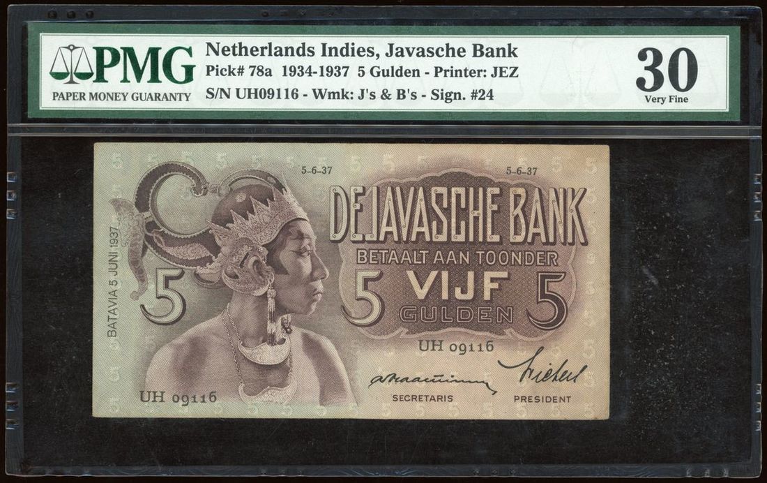 De Javasche Bank, Netherlands Indies, 5 gulden, 5.6.1937, serial number UH09116, (Pick 78a), PMG 30