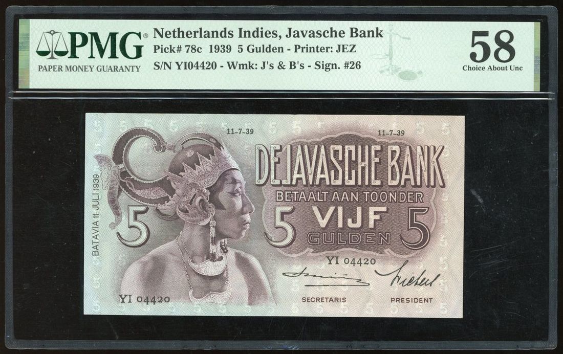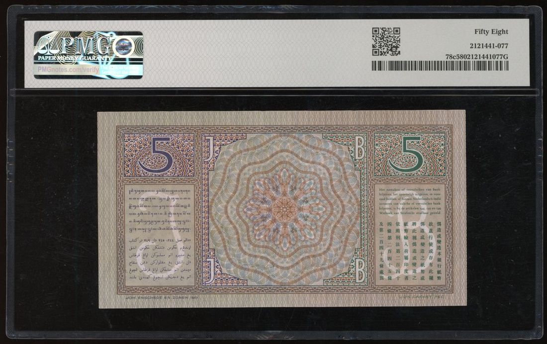 1939年荷屬東印度5盾, 編號 YI04420, PMG 58,