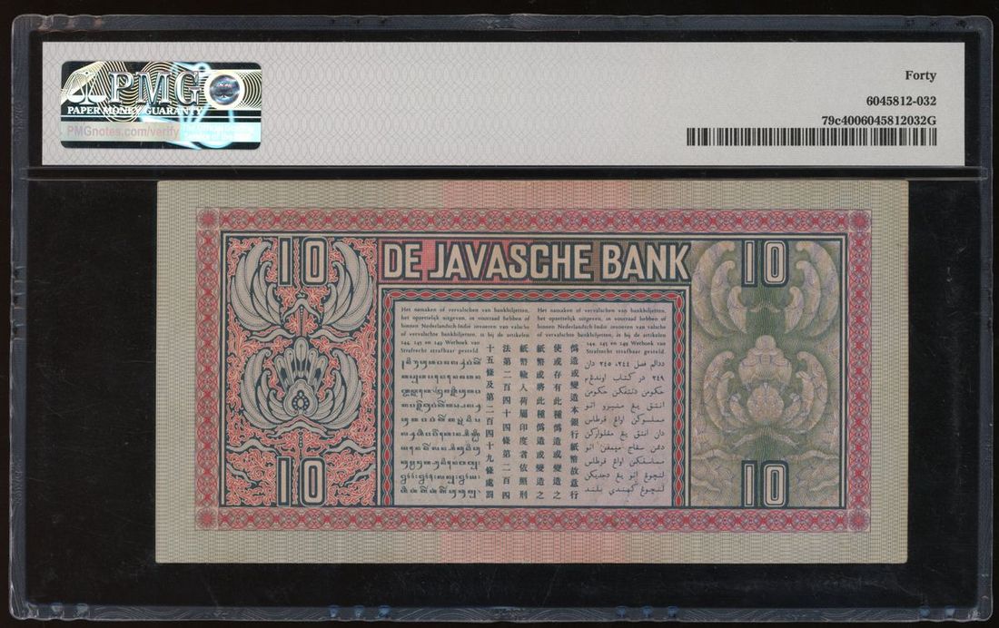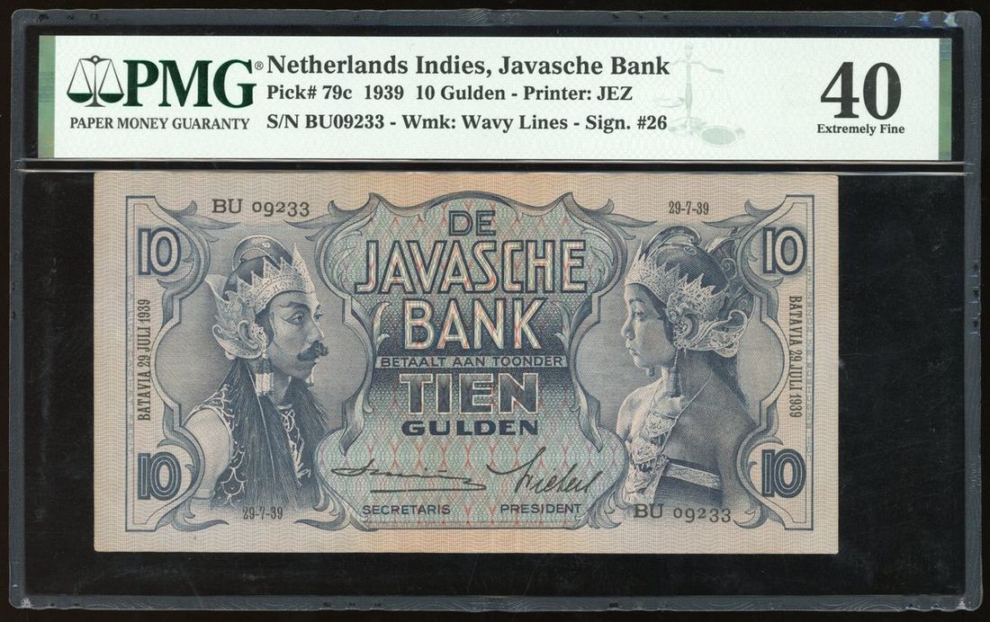 De Javasche Bank, Netherlands Indies, 10 gulden, 1939, serial number BU09233, (Pick 79c), PMG 40