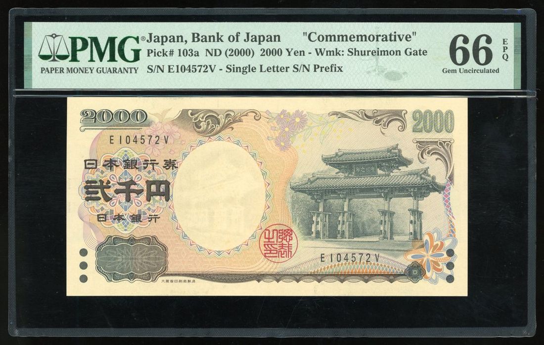 Bank of Japan, Japan, Commemorative 2000 yen, ND (2000), serial number E104572V, Single Letter S/N Prefix