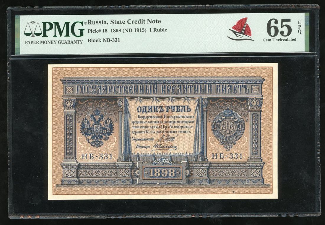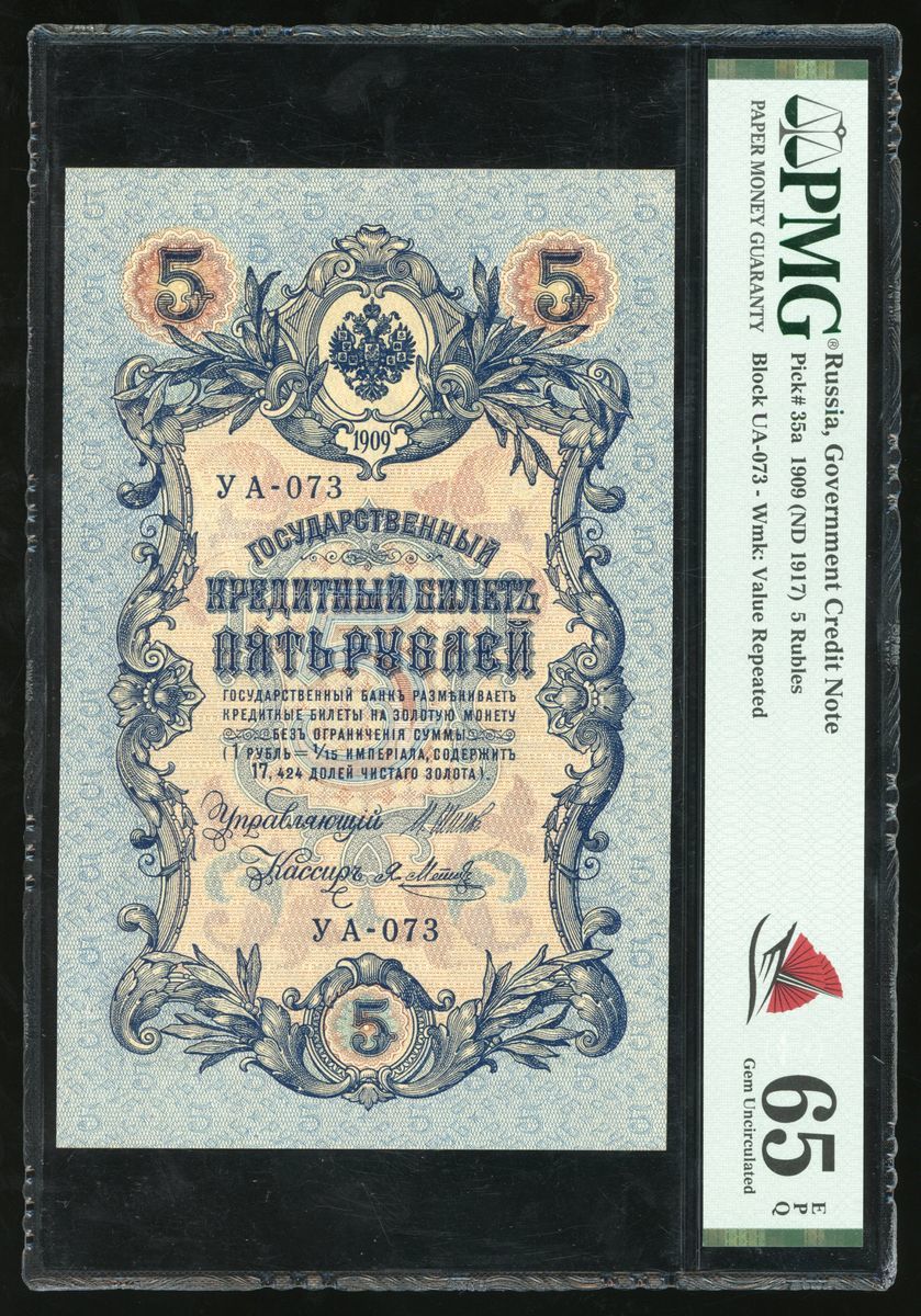 (x) Russia, a pair, including 1 ruble 1915 and 5 rubles 1917, (Pick 15, 35a), both PMG 65EPQ (2)