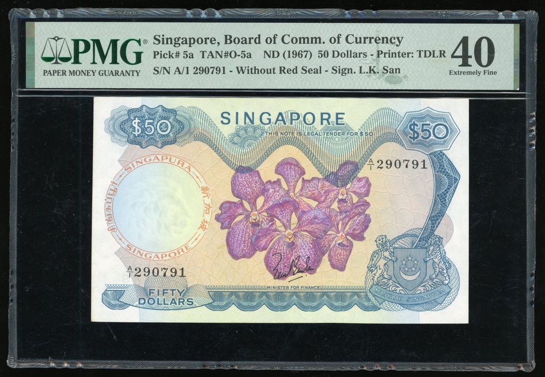 Board of Commissioners of Currency, Singapore, $50, ND (1967), serial number A/1 290791, (Pick 5a), PMG 40
