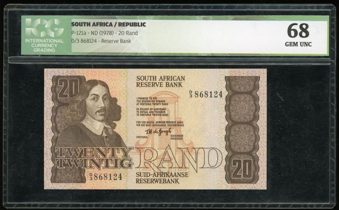 1978年南非20蘭特, 編號 D/3 868124, ICG 68