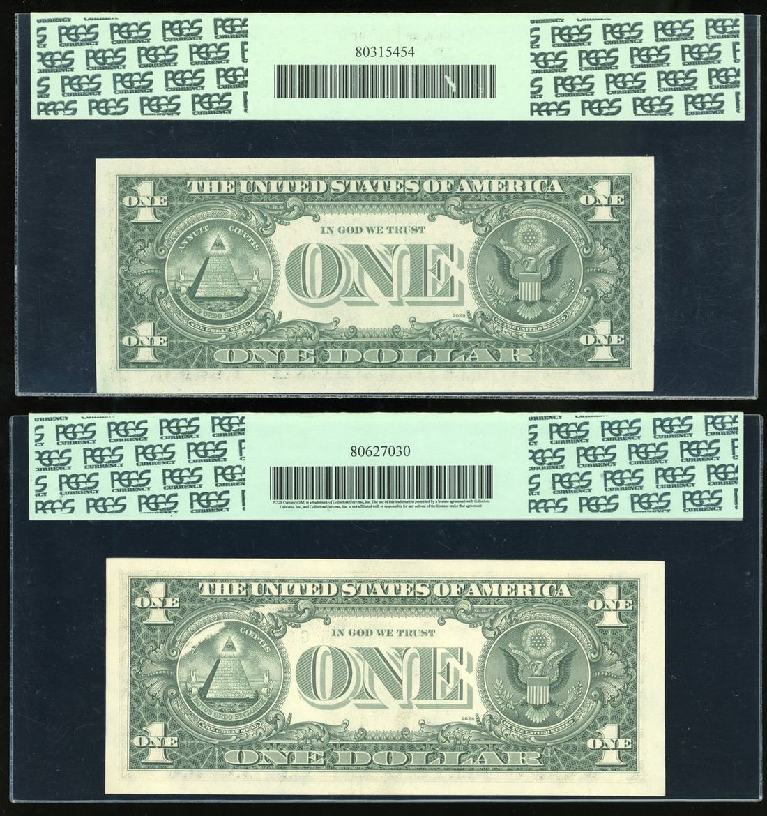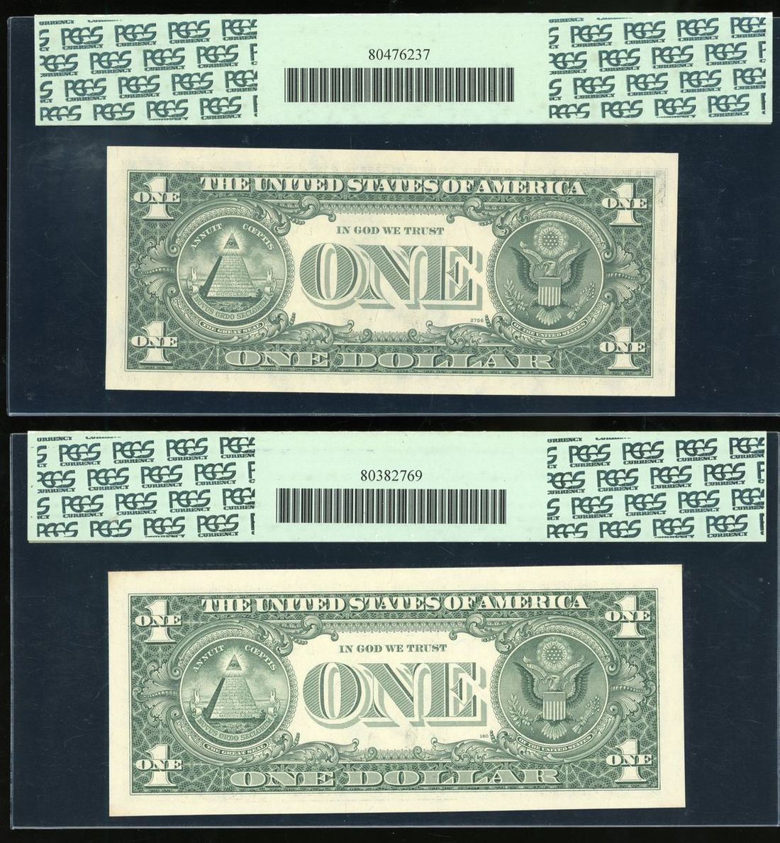 美國一組四枚1元錯體, 包括 1974, 1977, 2006年, 有印刷移位錯體, 黏印錯體, 油墨涂抹錯體, 均PCGS評級