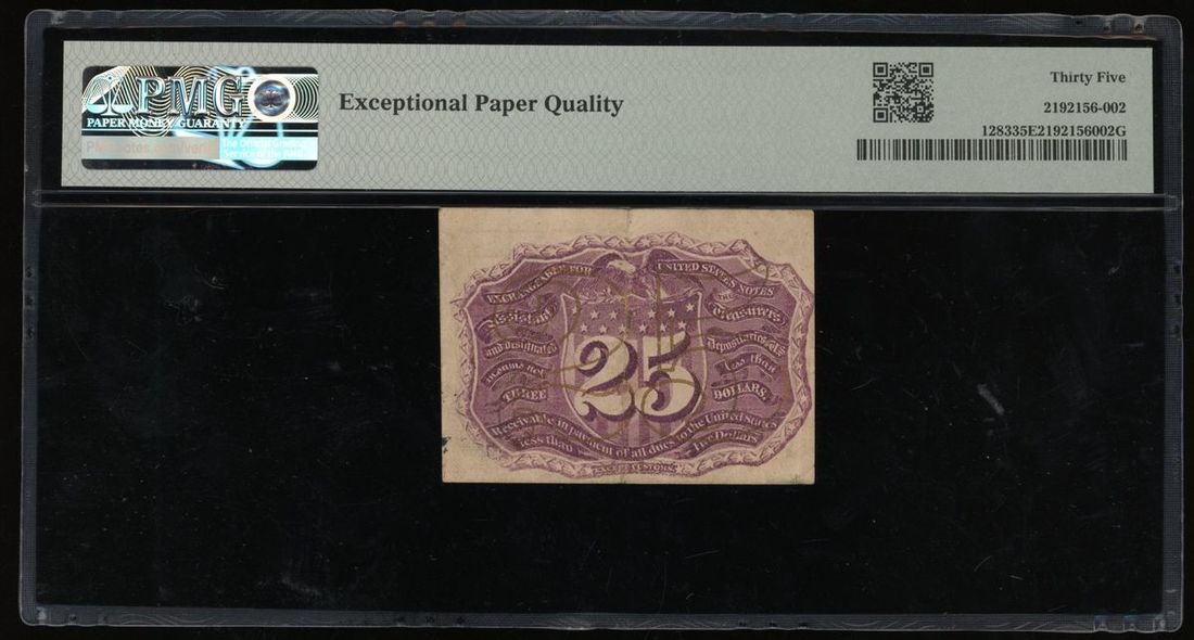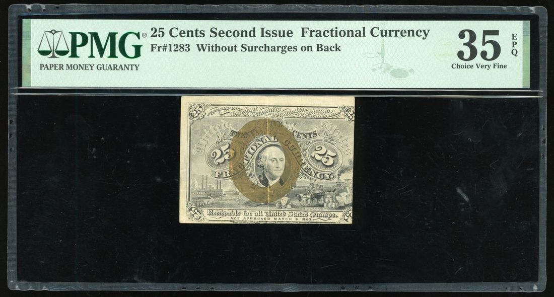 United States, 25 cents, 2nd Issue Fractional Currency, without surcharge on back,