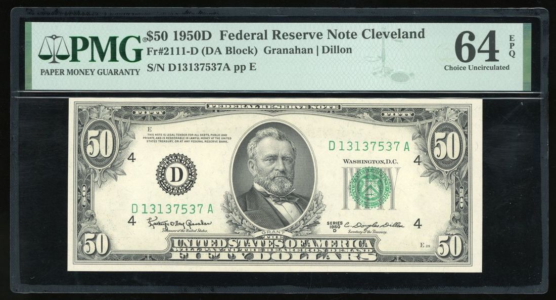 Federal Reserve Note Cleveland, USA, $50, 1950D, serial number D13137537A,