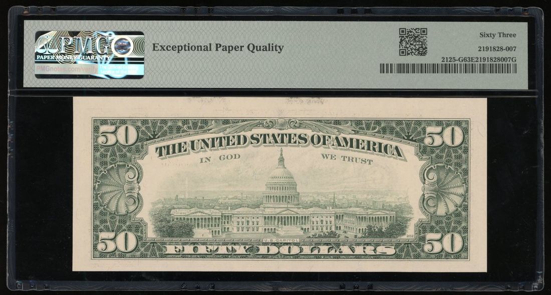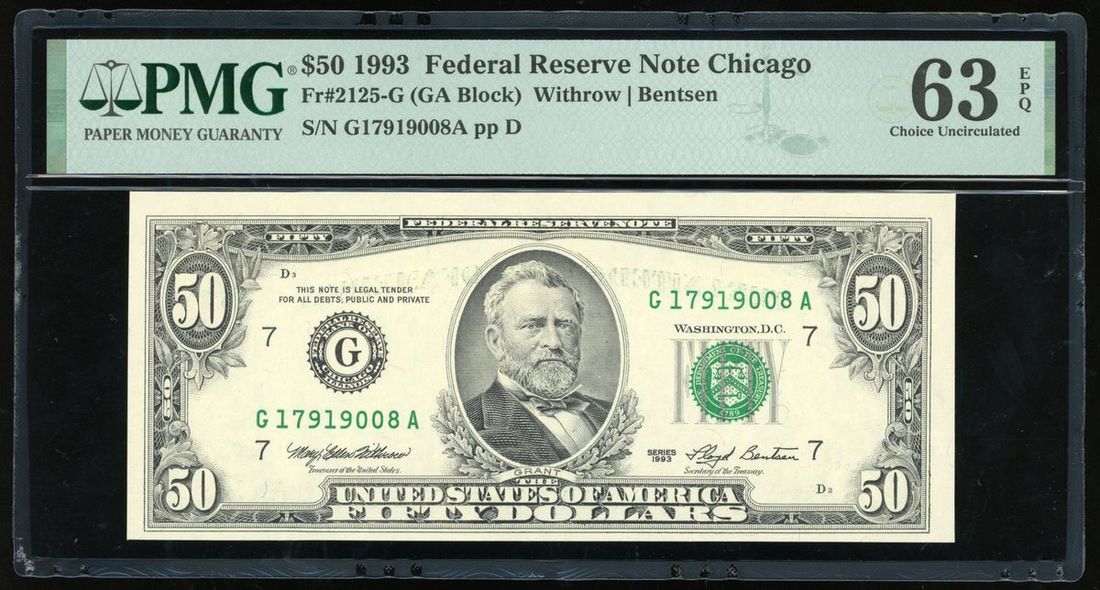 United States, $50, 1993, serial number G17919008A, PMG 63EPQ.
