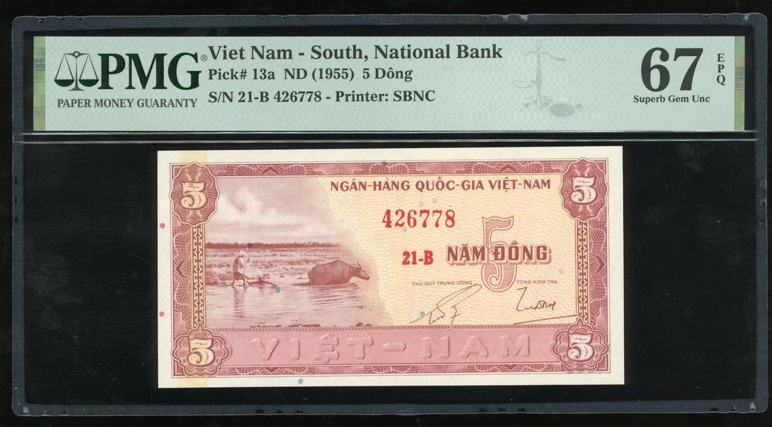1955年越南5盾, 編號 21-B 426778, PMG 67EPQ, PMG記錄冠軍分