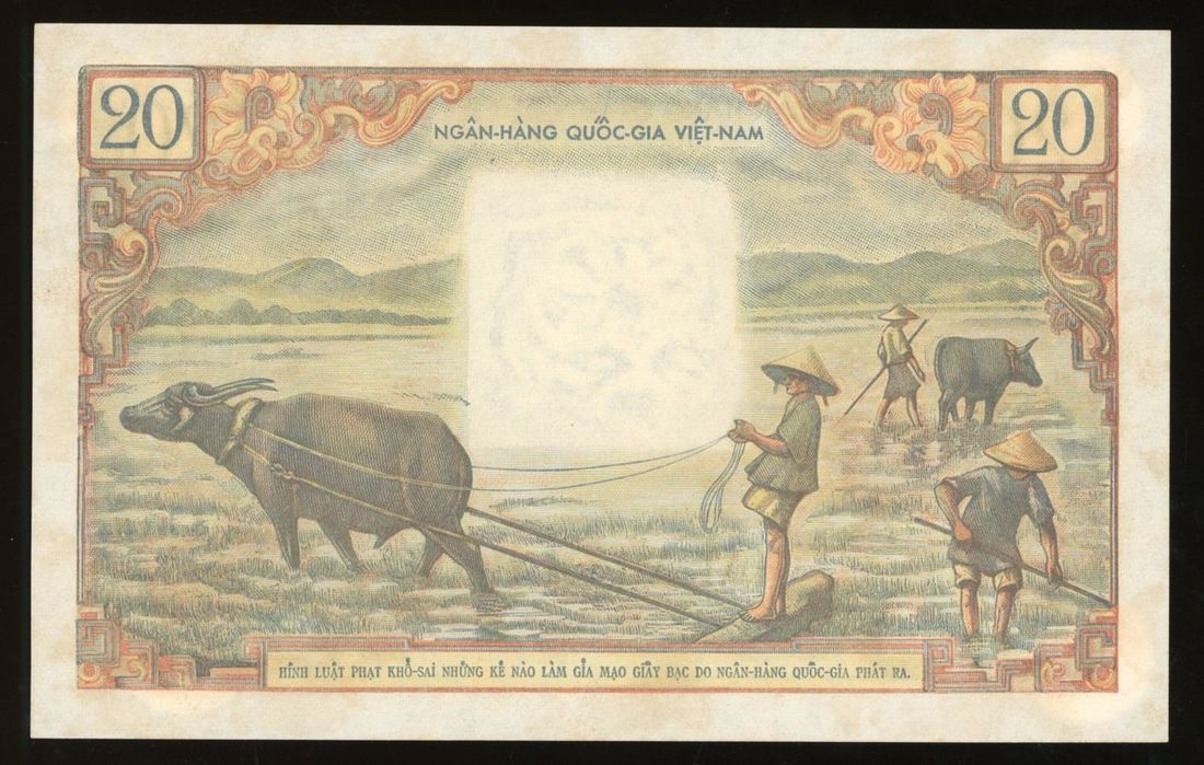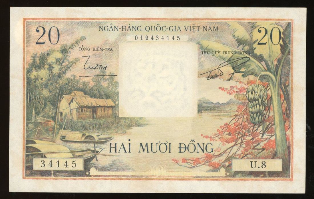 National Bank of Vietnam, 20 dong, ND (1956), serial number U.8 34145, (Pick 4), some stains, otherwise uncirculated