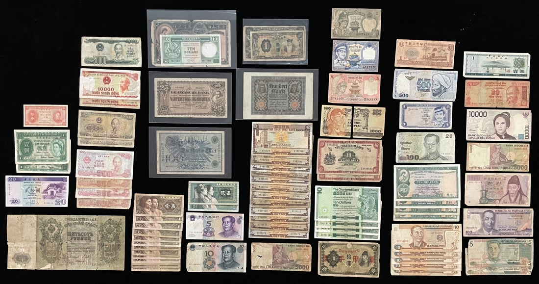 World and Hong Kong banknotes, a group of approx. 90, including Brunei, China, Macau, Hong Kong includes a Chartered Bank $10 s/n A003096 and HSBC 1941 $10, India, Indonesia, Netherlands Indies, Korea, Philippines, Vietnam