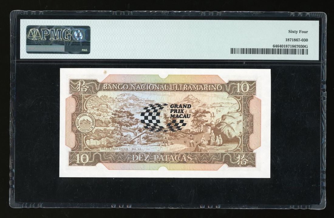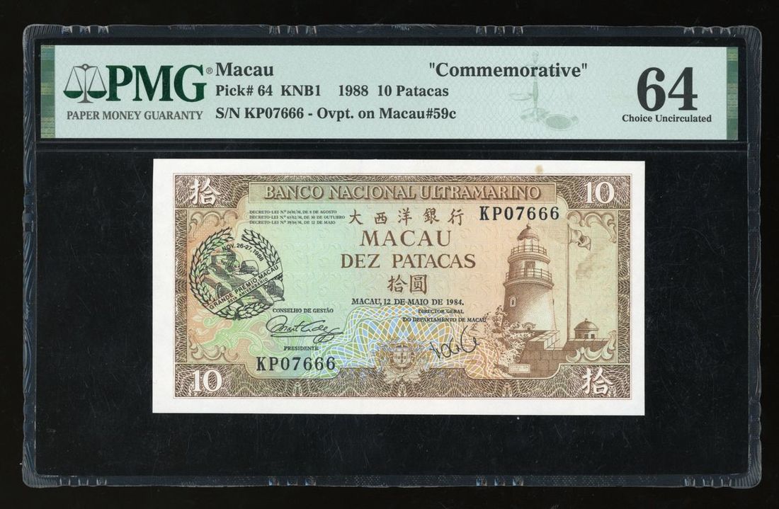 Banco Nacional Ultramarino, Macau, Commemorative 10 Patacas, 12.5.1984, serial number KP07666,