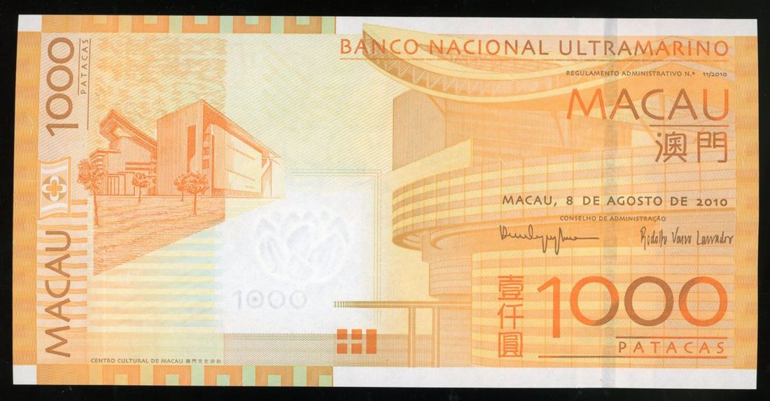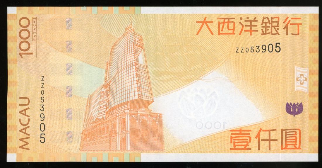 Banco Nacional Ultramarino, Macau , replacement 1000 patacas, 2010, serial number ZZ053905, (Pick 84*), uncirculated