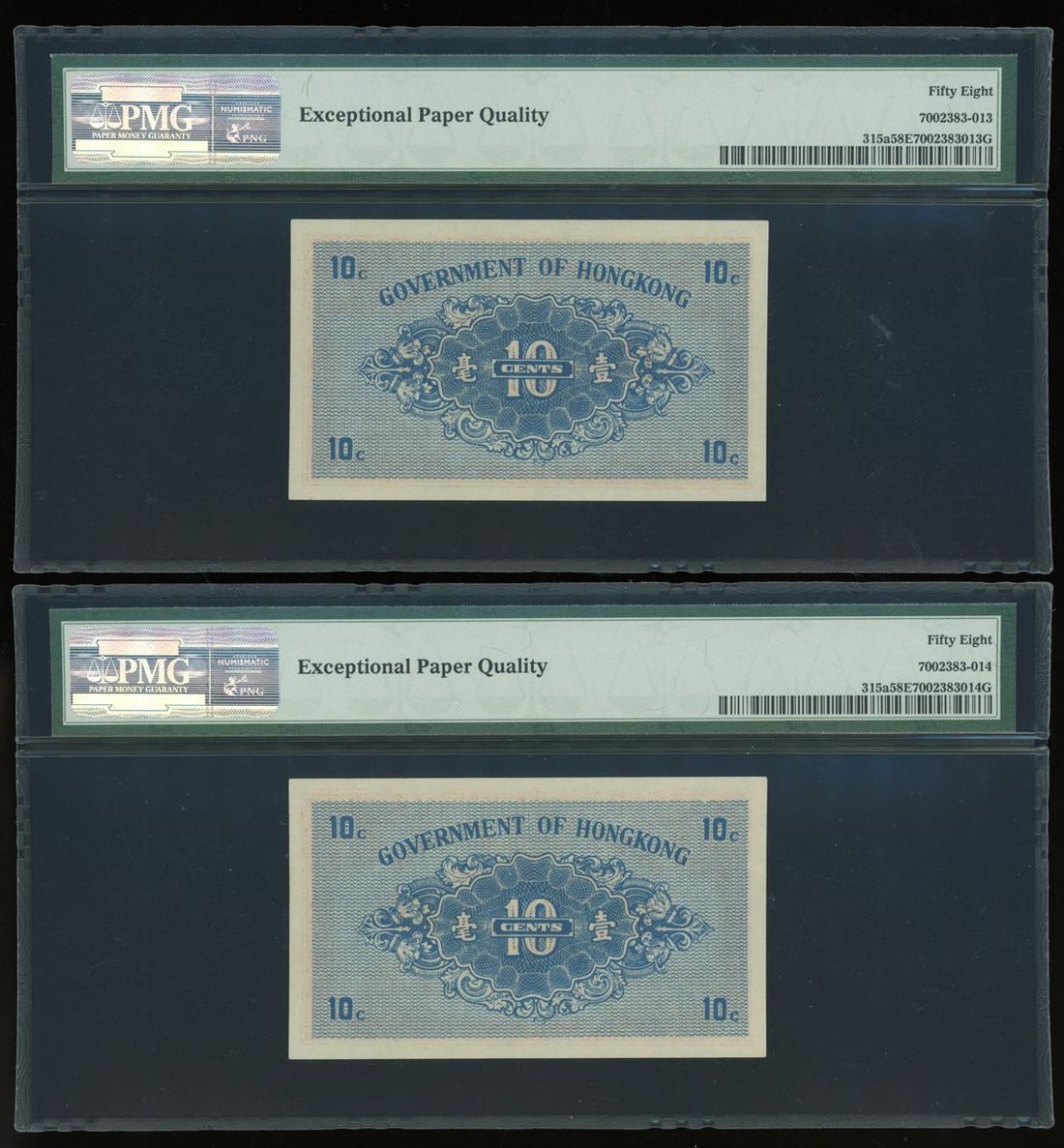 1941年香港政府壹毫一組3枚,無日期,連號157997/8/9,PMG均評58EPQ