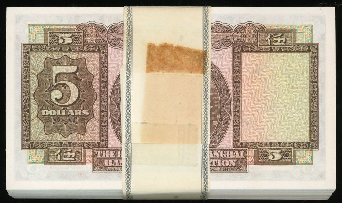 HongKong and Shanghai Banking Corporation, consecutive bundle of $5 (99), 31.7.1967, serial number 507702-507800 BZ, (Pick 181c), as issued with very minor handling at margins, with original printer bundle (99)