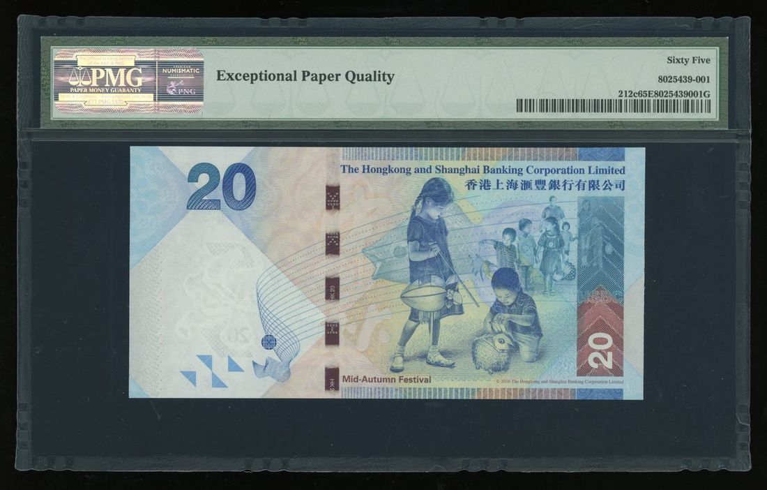 The Hongkong and Shanghai Banking Corporation, Hong Kong, $20, 1.1.2013, solid serial number KX000001, (Pick 207f), PMG 65EPQ Gem Uncirculated
