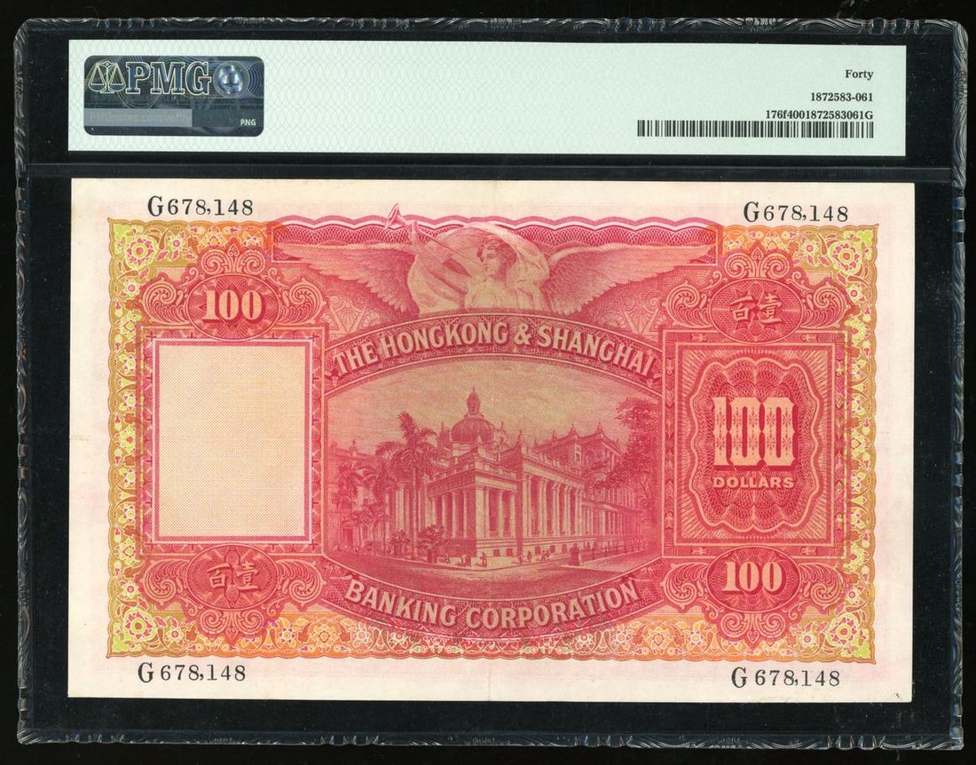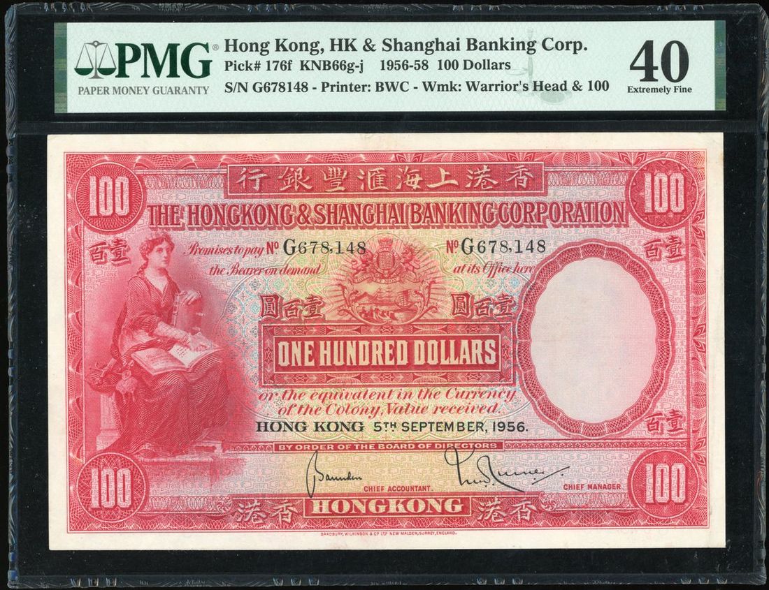 HongKong & Shanghai Banking Corporation, $100, 5.9.1956, serial number G678,148, (Pick 176f), PMG 40. Attractive large size note
