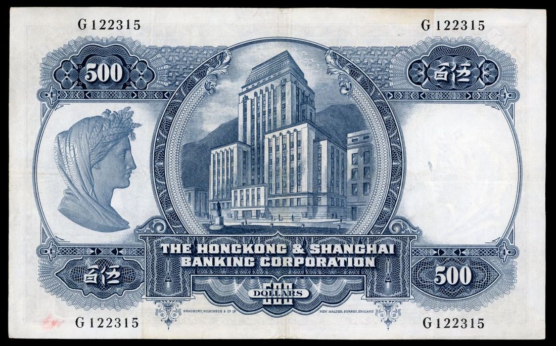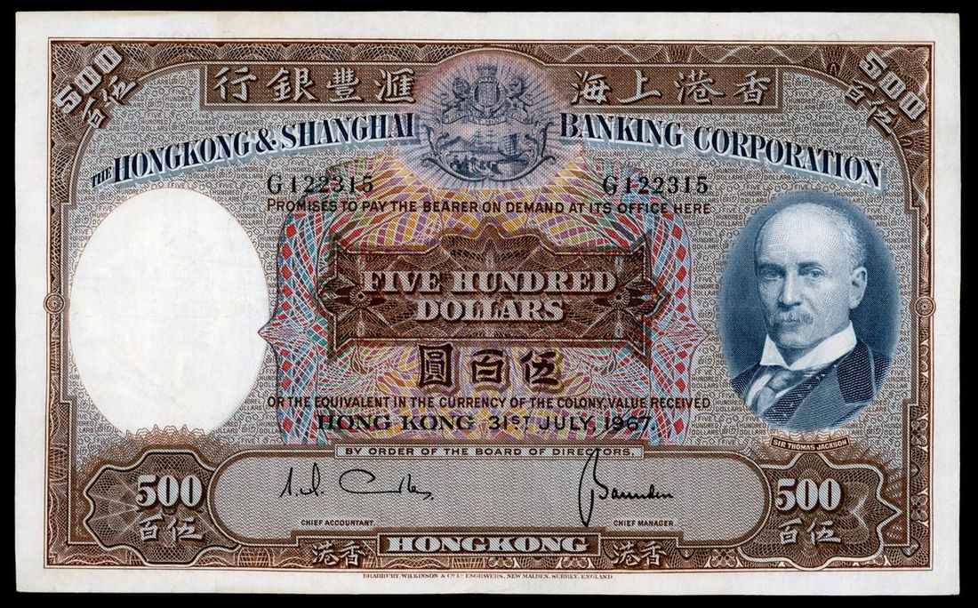 HongKong & Shanghai Banking Corporation, $500, 31.7.1967, serial number G122315, (Pick 179b), extremely fine to about uncirculated, mild foxing at edges, pressed, viewing recommended, sold as seen no return.