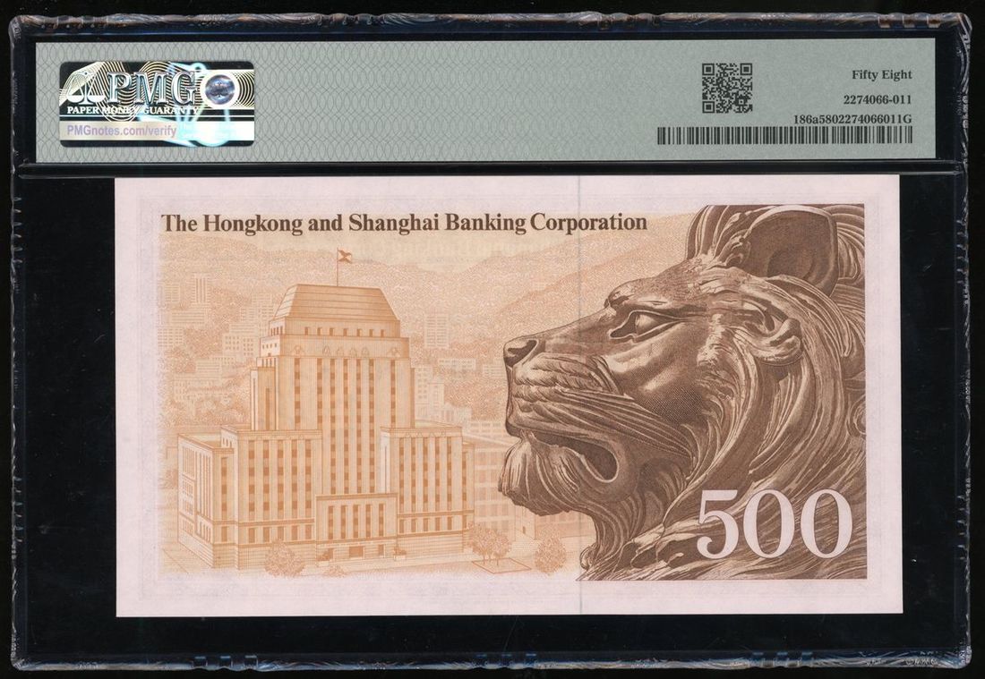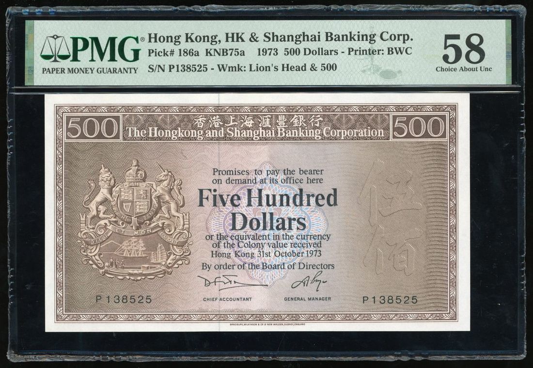HongKong and Shanghai Banking Corporation, $500, 31.10.1973, serial number P138525, (Pick 186a), PMG 58