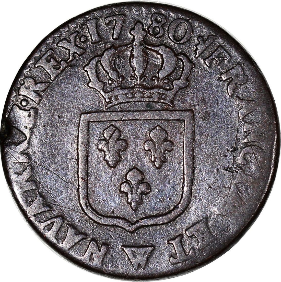 France, 1 liard, 1780, and