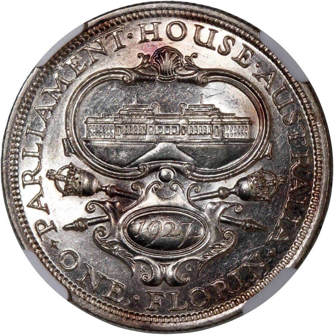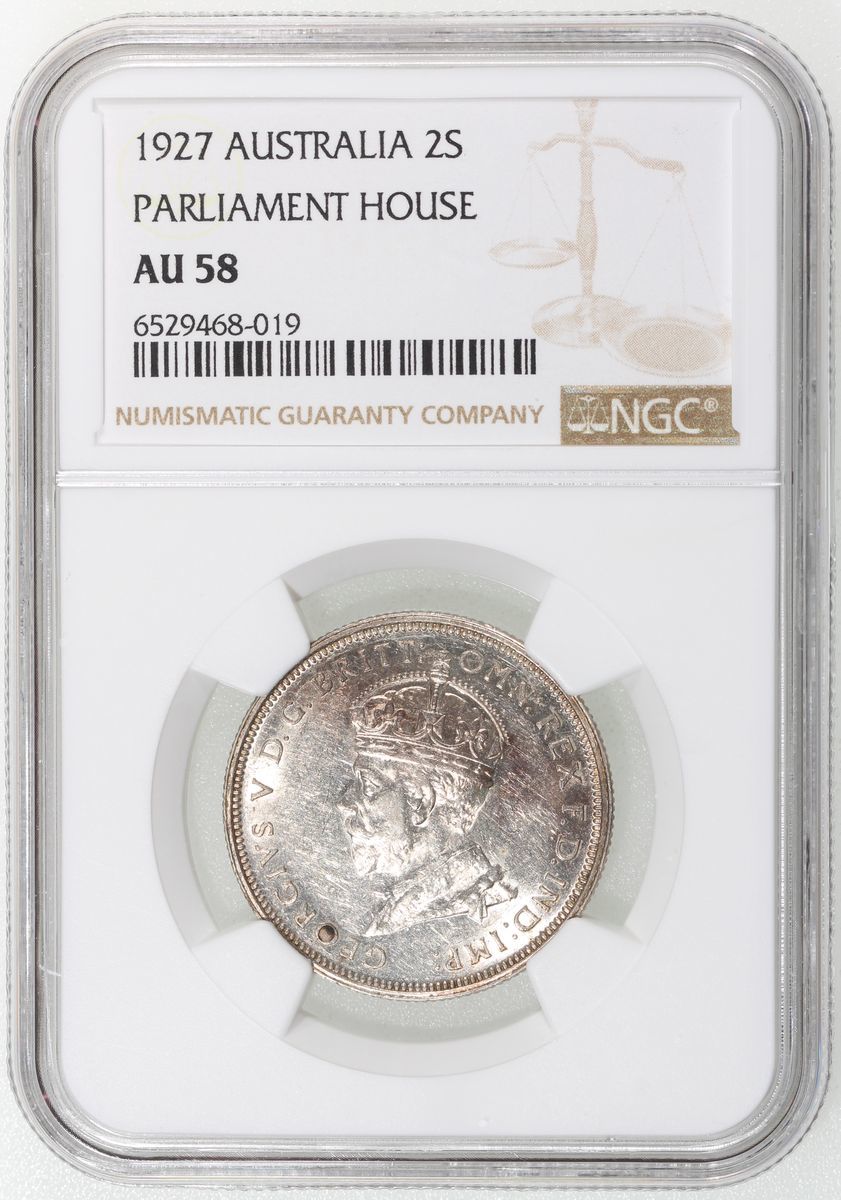 Australia, [NGC AU58] commemorative silver 1 florin, 1927, NGC AU58, cert. #6529486-019