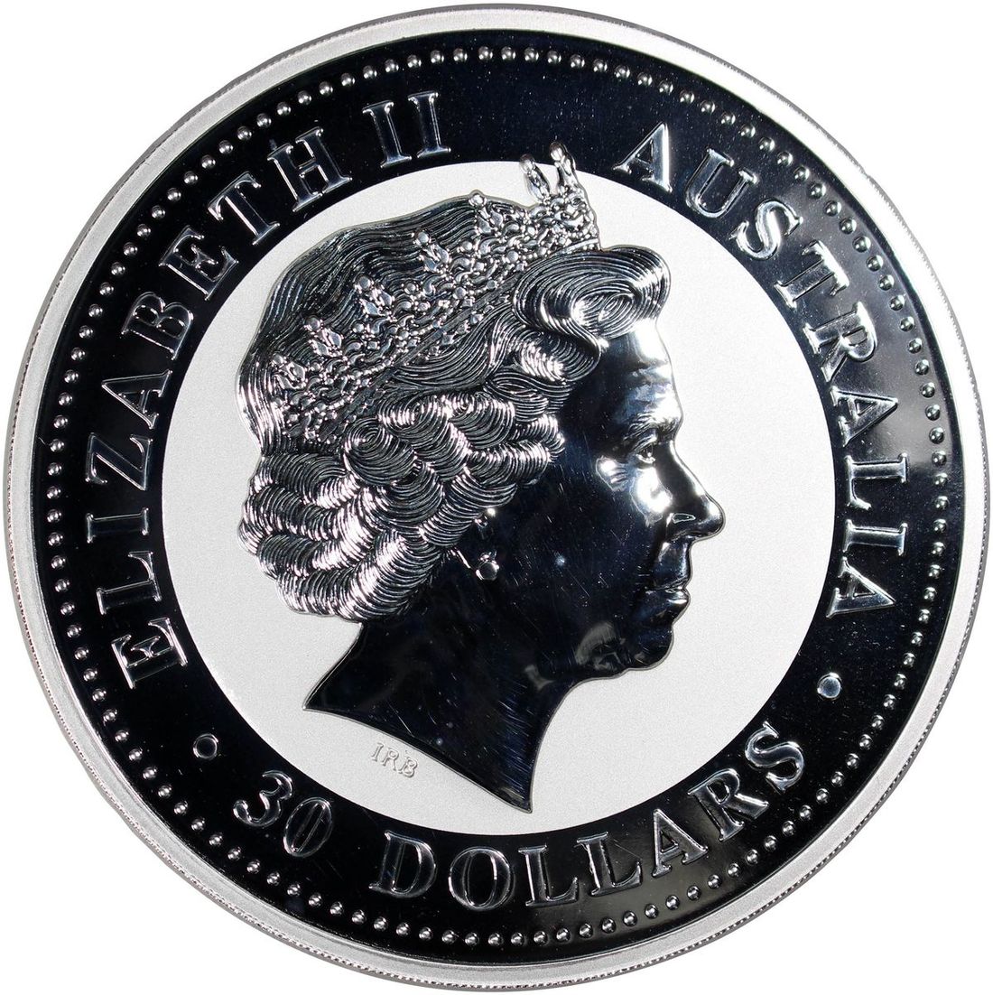2001年澳洲紀念精鑄1公斤銀幣30元, 發行量3108枚, 連原盒