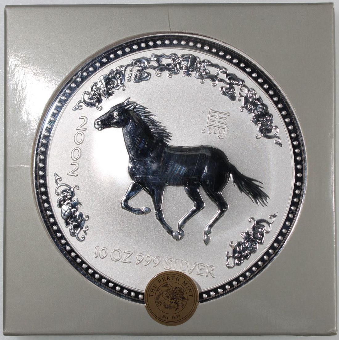 Australia, silver $10, 2002, First Lunar Series, Year of the Horse, Perth mint, ASW 10oz, mintage 5537 Uncirculated,
