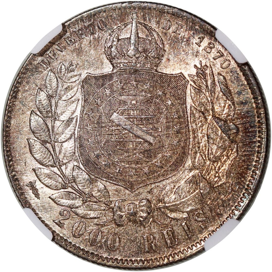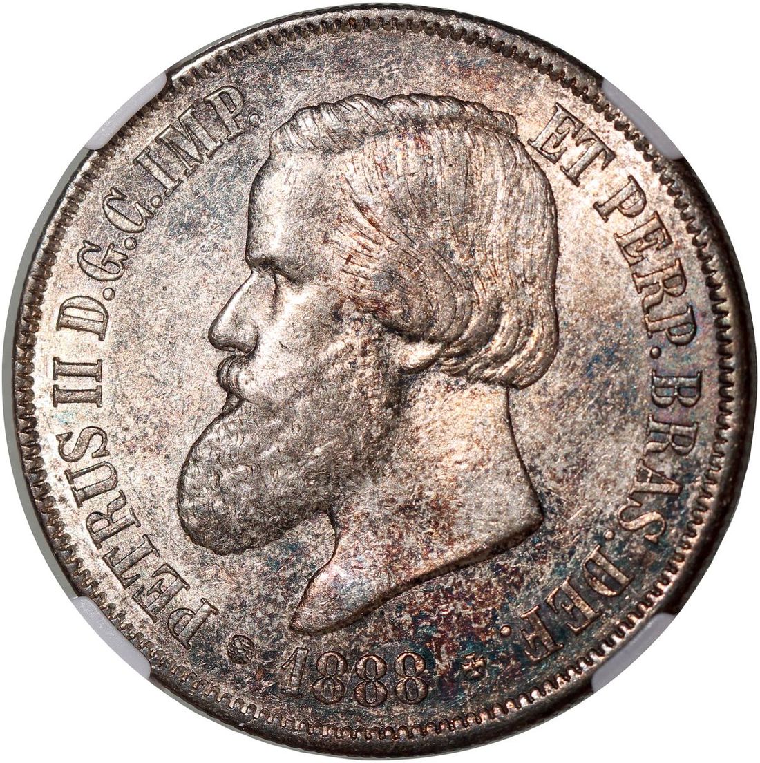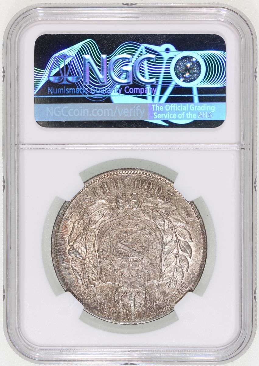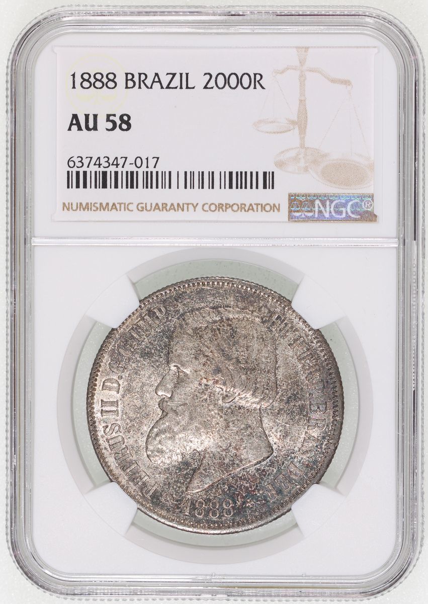 Brazil, silver 2000 reis, 1888, NGC AU55, cert. #6374347-017