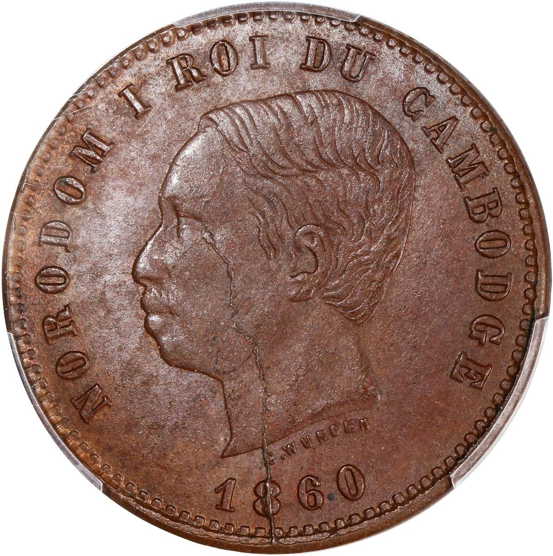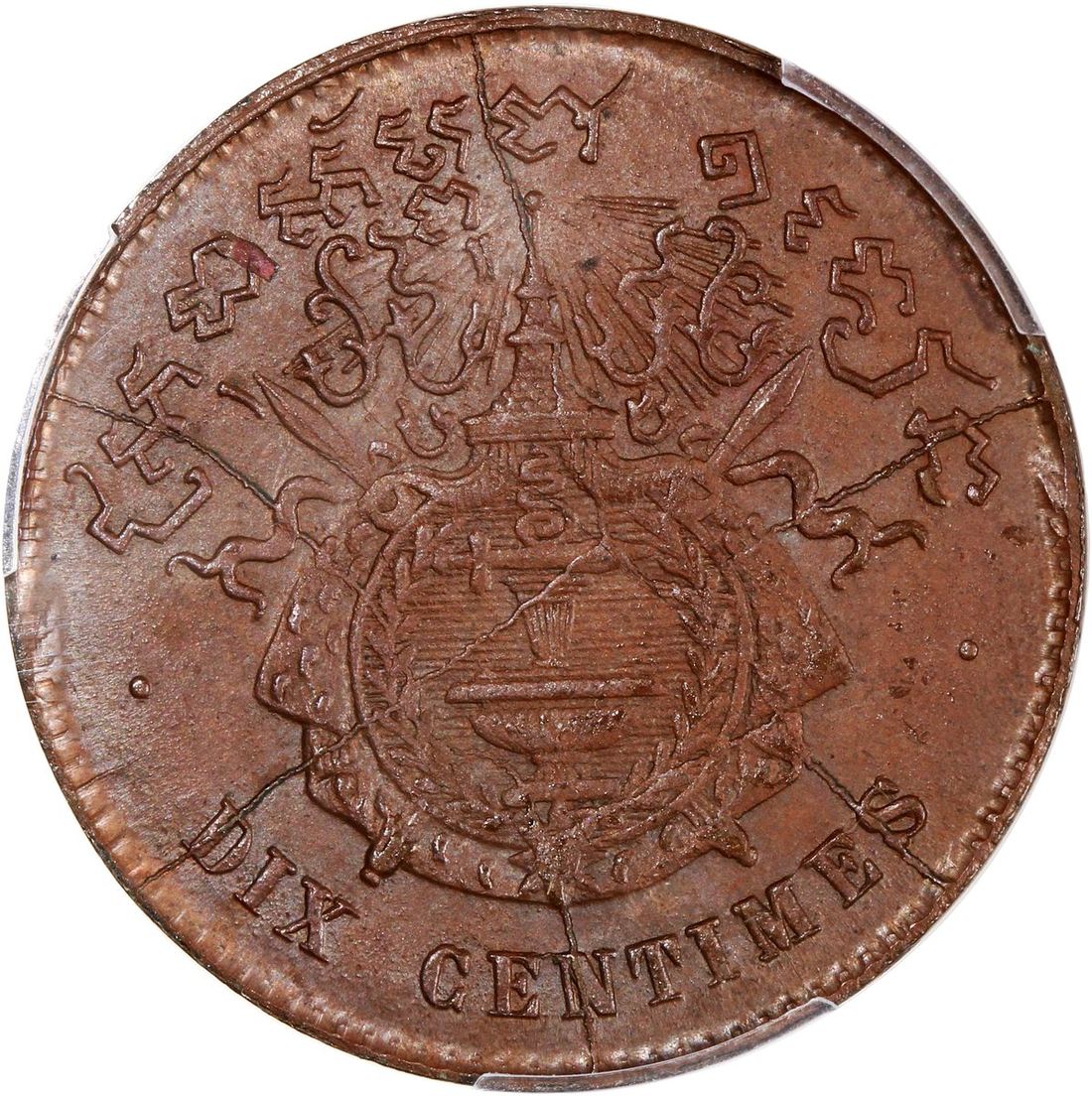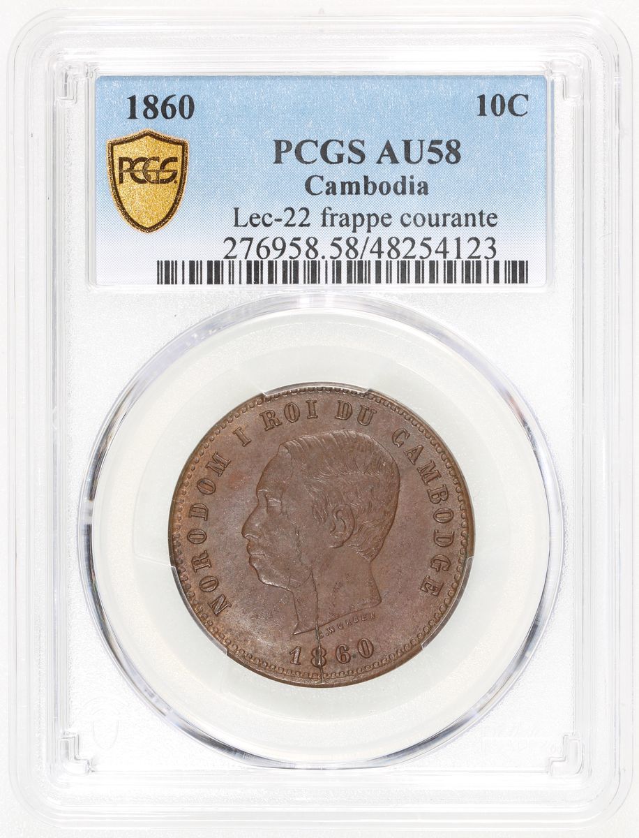(x) Cambodia, [PCGS AU58] 10 centimes, 1860, 'Norodom I', (Leclerc-22, frappe courante), #48254123
