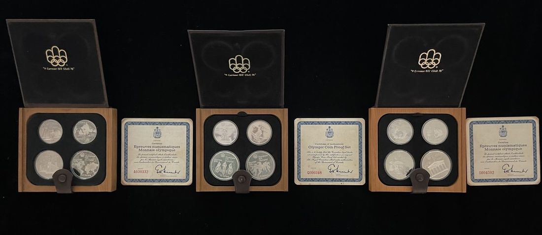 1976年加拿大蒙特利爾奧運會一組三套共12枚精鑄銀幣5元及10元,