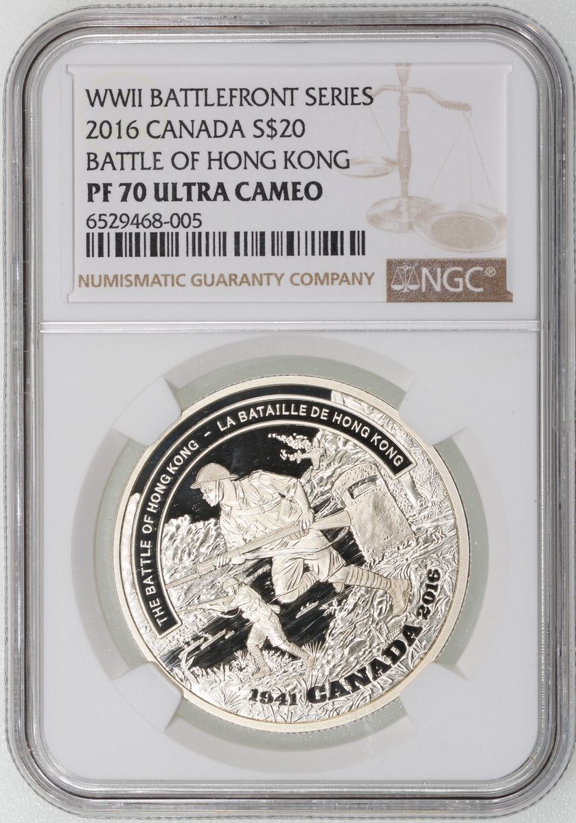 Canada, [NGC PF70] silver $20, 2016, WWII Battlefront Series, "Battle of Hong Kong",