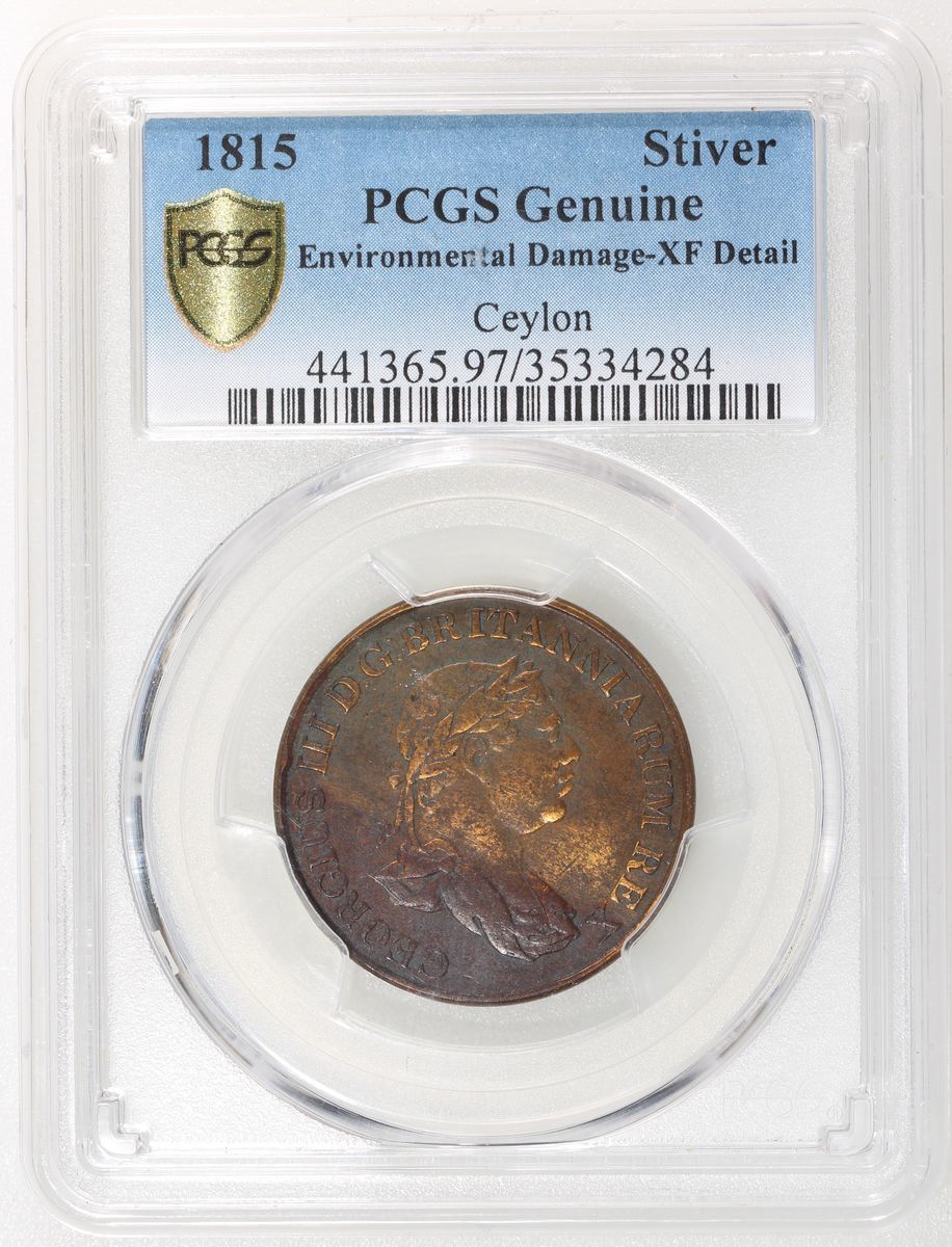 Ceylon, [PCGS XF Detail] copper stiver, 1815, (KM-81), PCGS Genuine Environmental - XF Detail, #35334284.