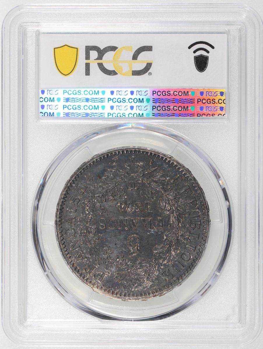 1874A法國5法郎, PCGS MS62. 背面帶炭色包漿