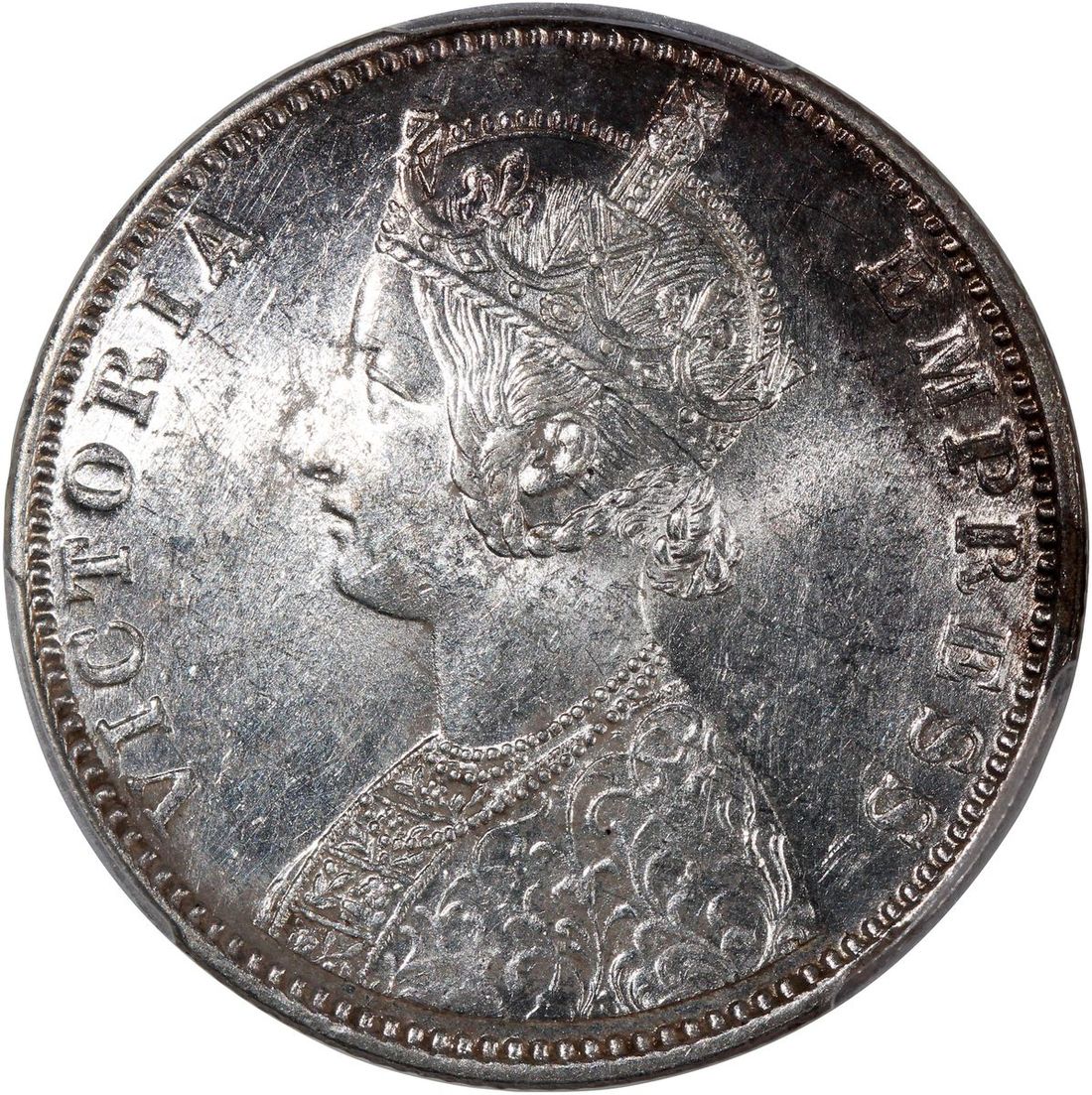 India, [PCGS MS62] silver 1 rupee, 1900-B, Victoria on obverse, minor toned, with luster, PCGS MS62. Cert.# 44292232
