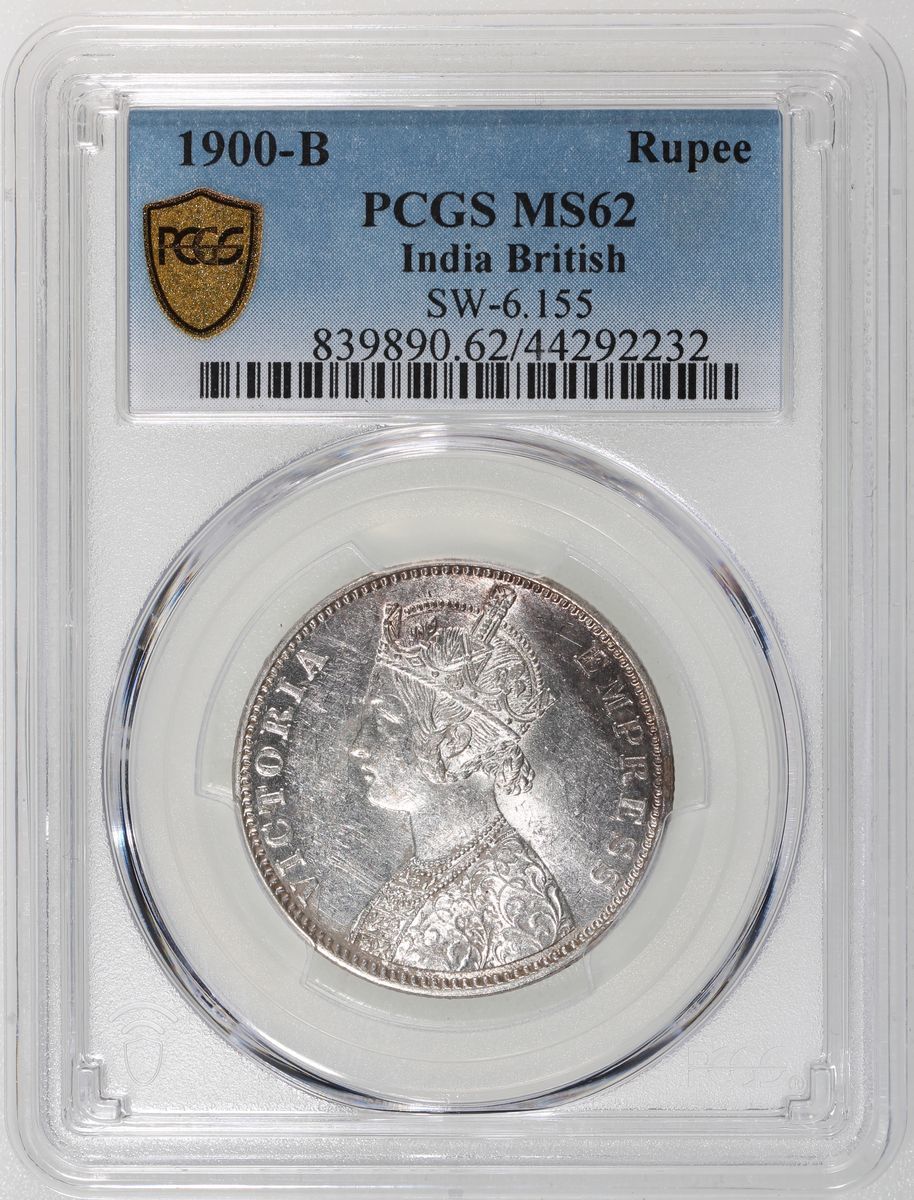 1900B印度盧比銀幣, PCGS MS62, 原光充沛