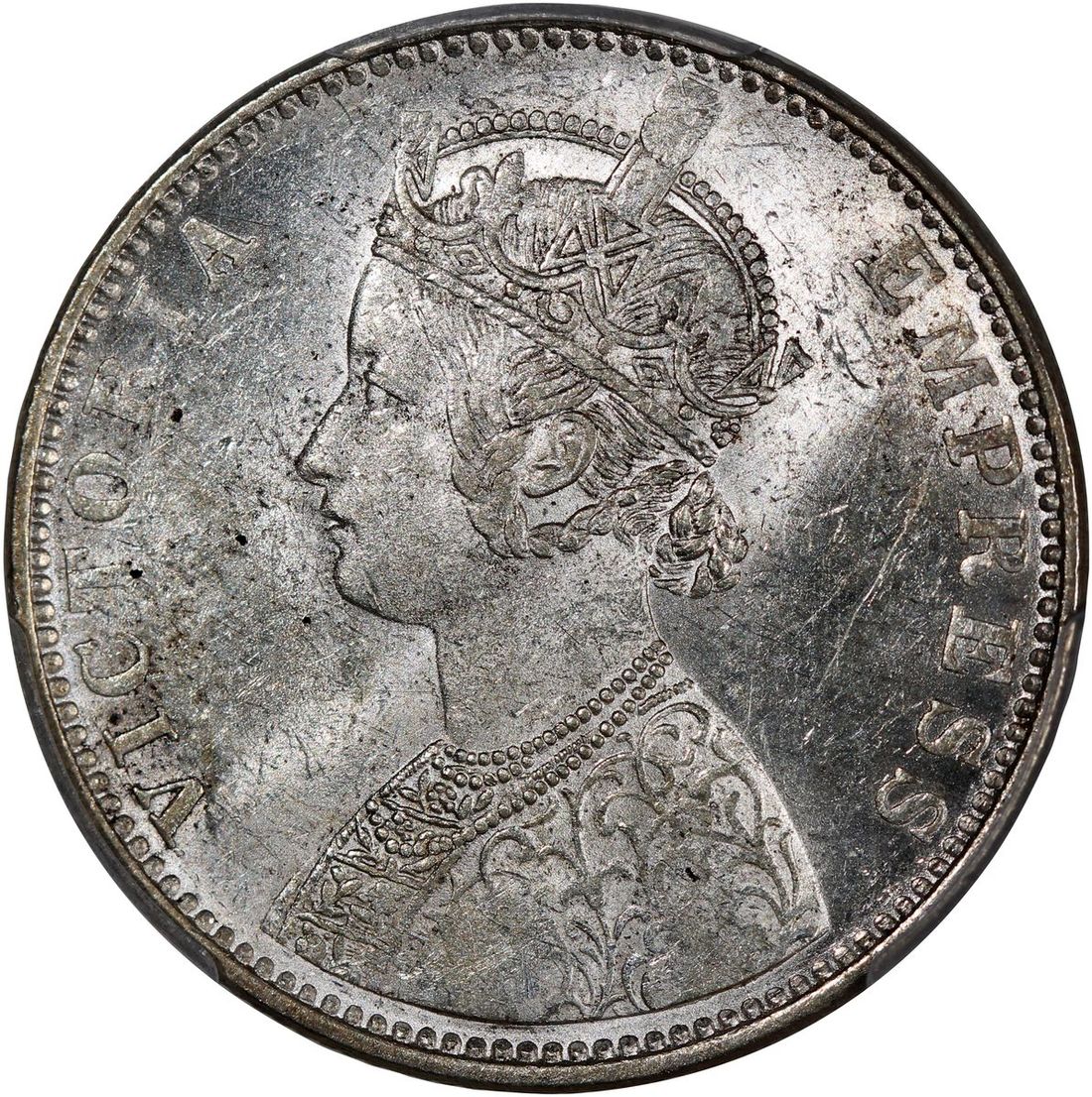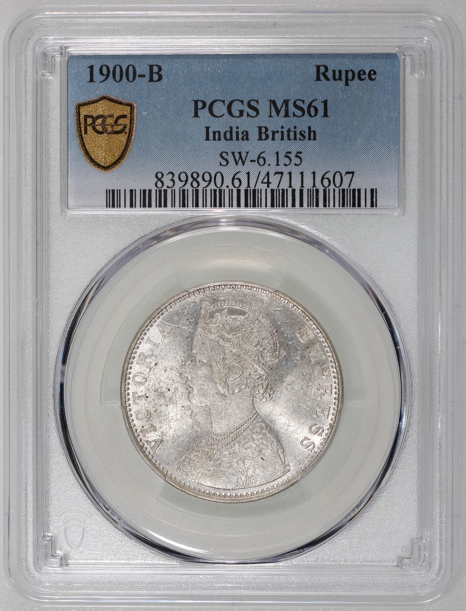 India, [PCGS MS61] silver rupee, 1900-B, Bombay mint, type A bust of Victoria on obverse, (SW-6.155), PCGS MS61, cert. #47111607, mottled grey toning, but the surfaces are still highly reflective