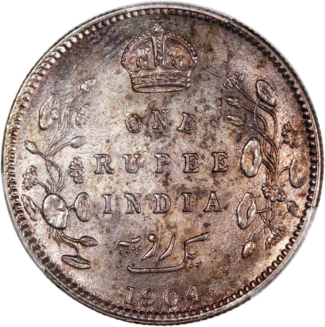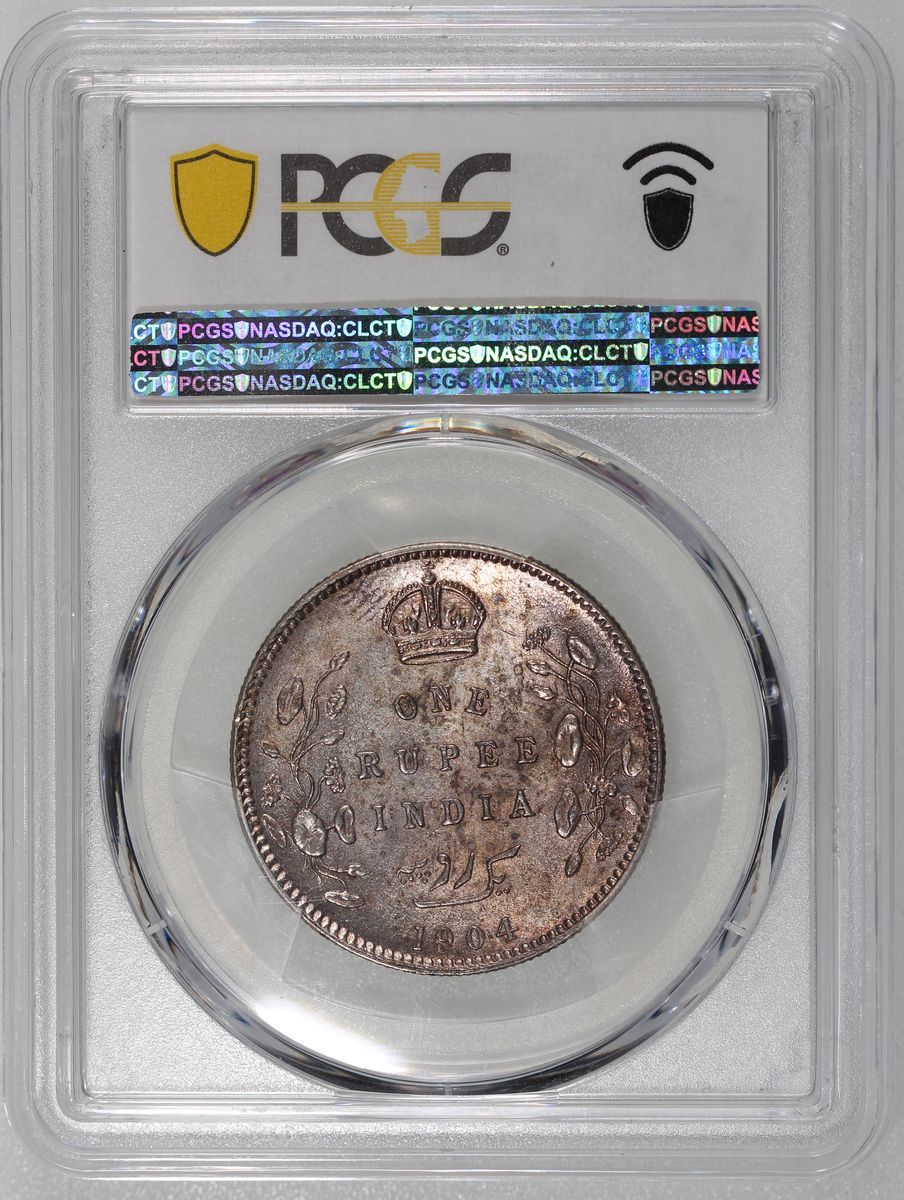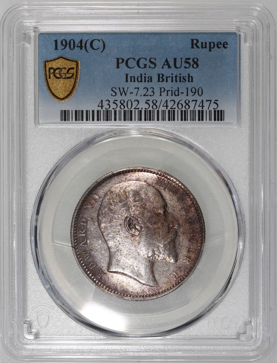 India, [PCGS AU58] silver rupee, 1904-C, Calcutta Mint, Edward VII on obverse, (SW-7.23, Prid-190), PCGS AU58, cert. #42687475, attractive reddish brown toning to the peripheries