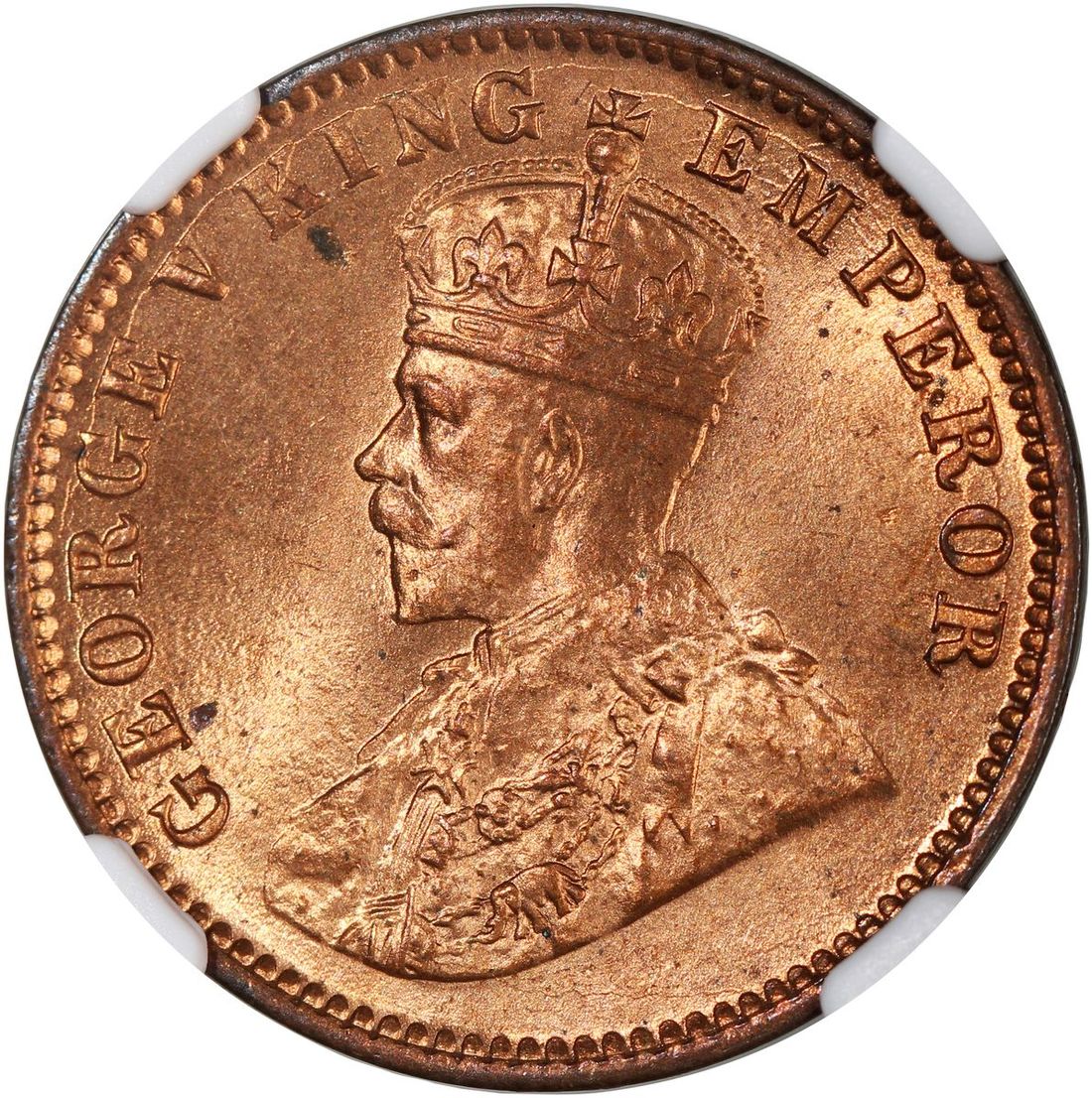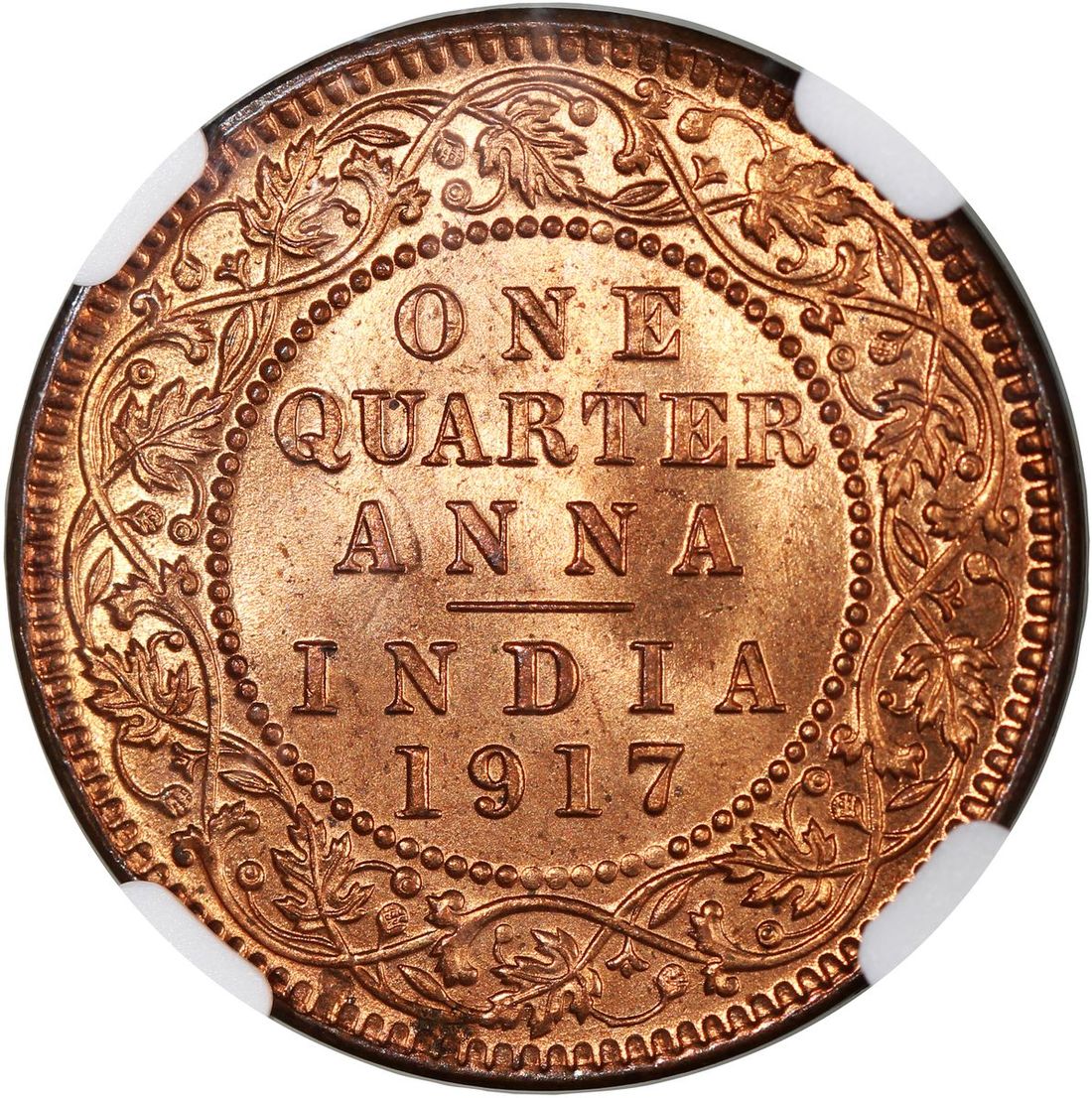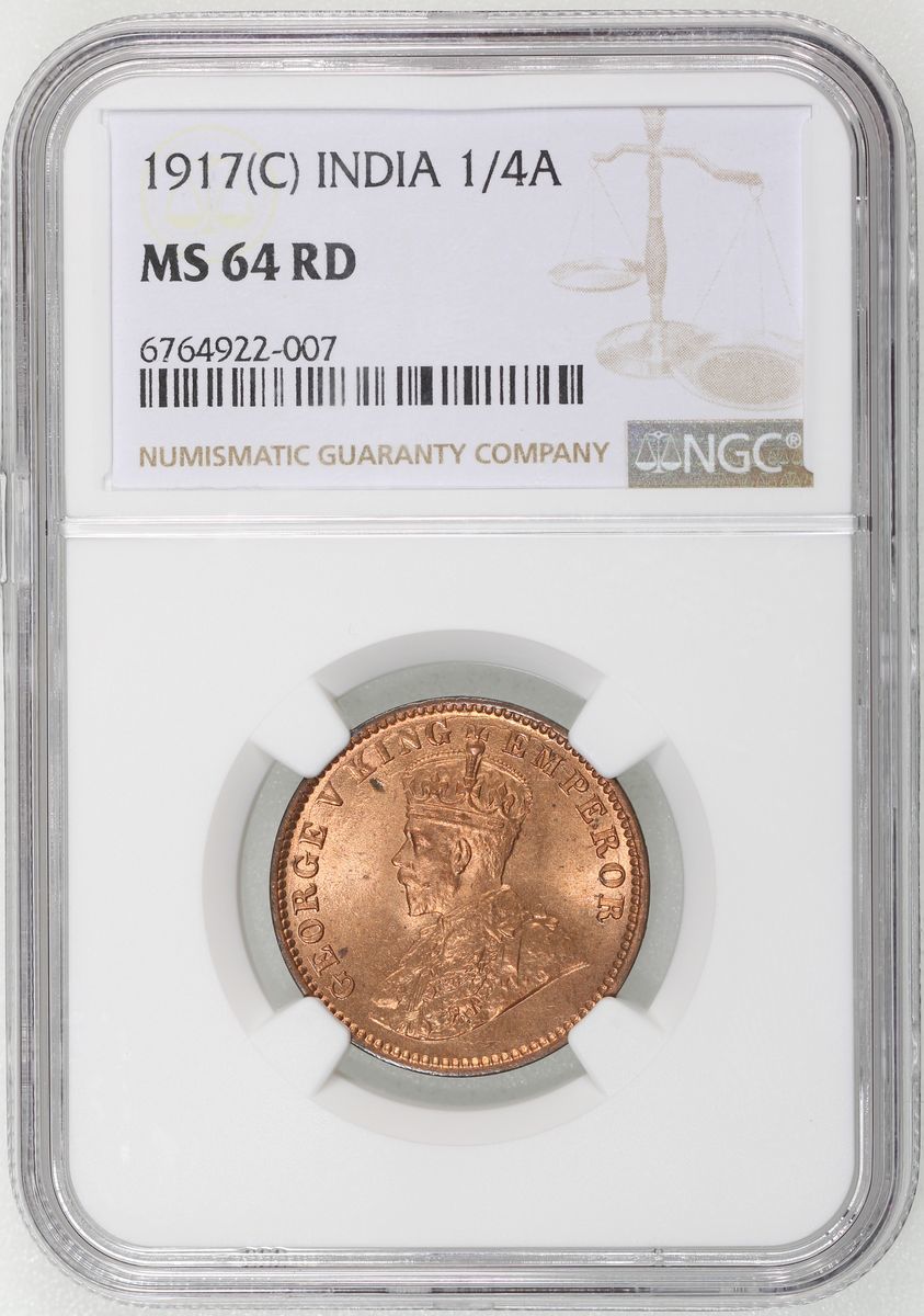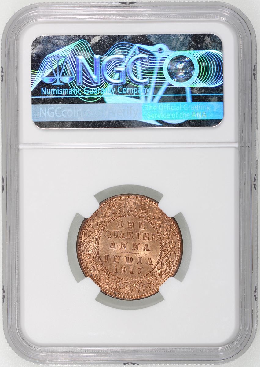 India, [NGC MS64RD] bronze 1/4 anna, 1917 (C), Calcutta Mint, George V on obverse, (KM-512), NGC MS64RD, cert. #6764922-007
