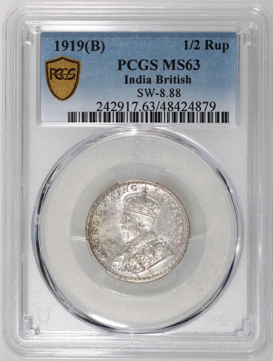 India, [PCGS MS63] silver ½ rupee, 1917-B, Bombay mint, George V on obverse, (KM-522, SW-8.88), PCGS MS63, cert. #48424879