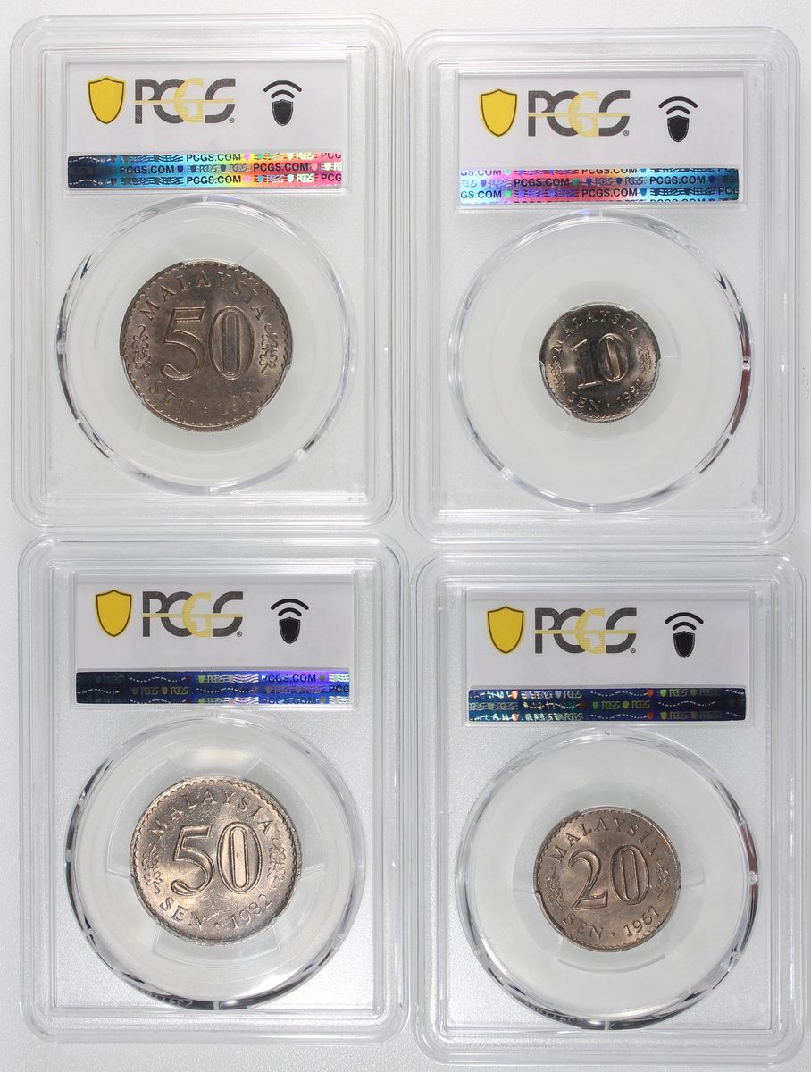 馬來西亞一組四枚, 包括, 1967年50及20仙, 1982年50及10仙, PCGS MS63, MS62, MS62, MS66