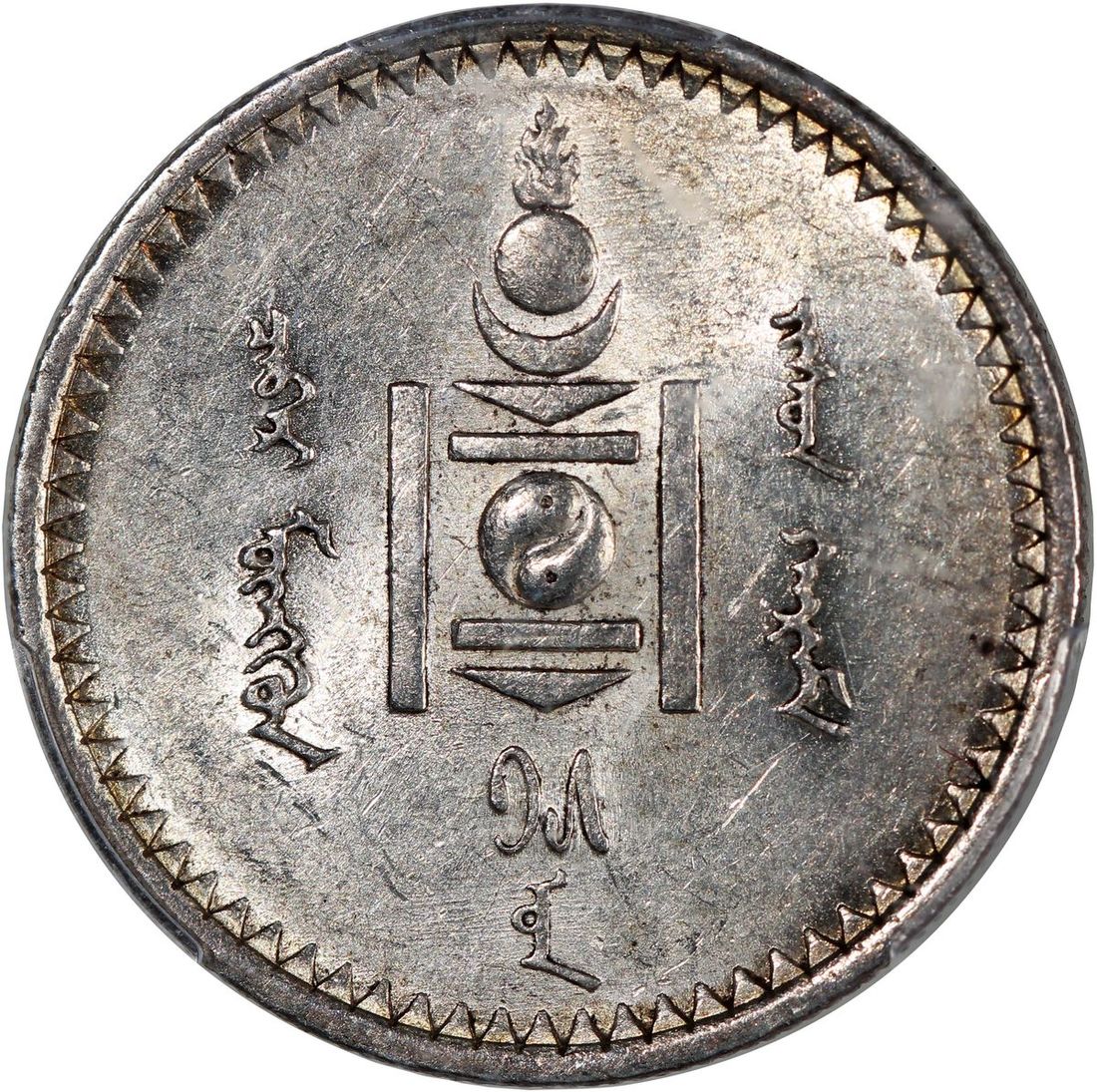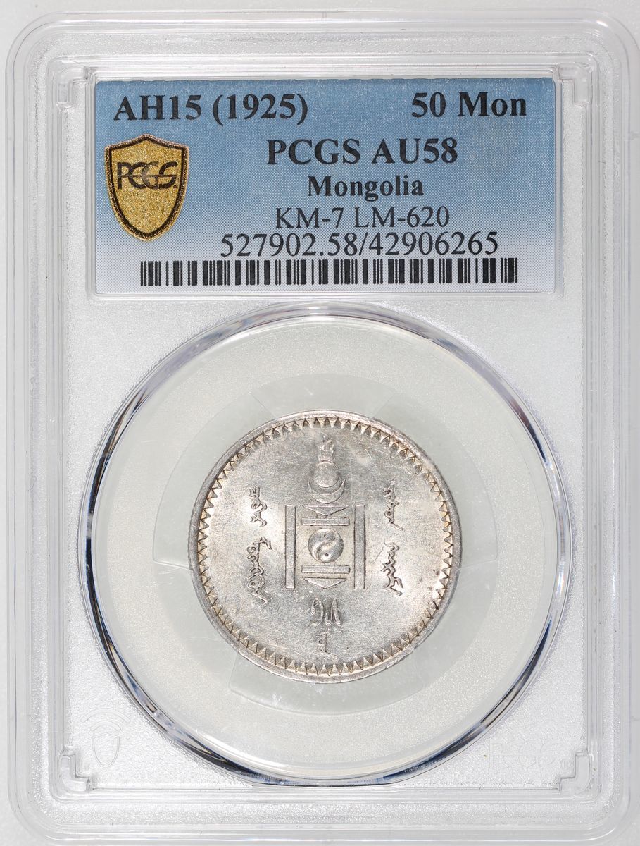Mongolia, [PCGS AU58] silver 50 mongo, AH15 (1925), Leningrad (St. Petersburg) mint, (LM-620, KM-7), PCGS AU58, cert. #42906265, very closer to mint state with cartwheel lustre on both sides