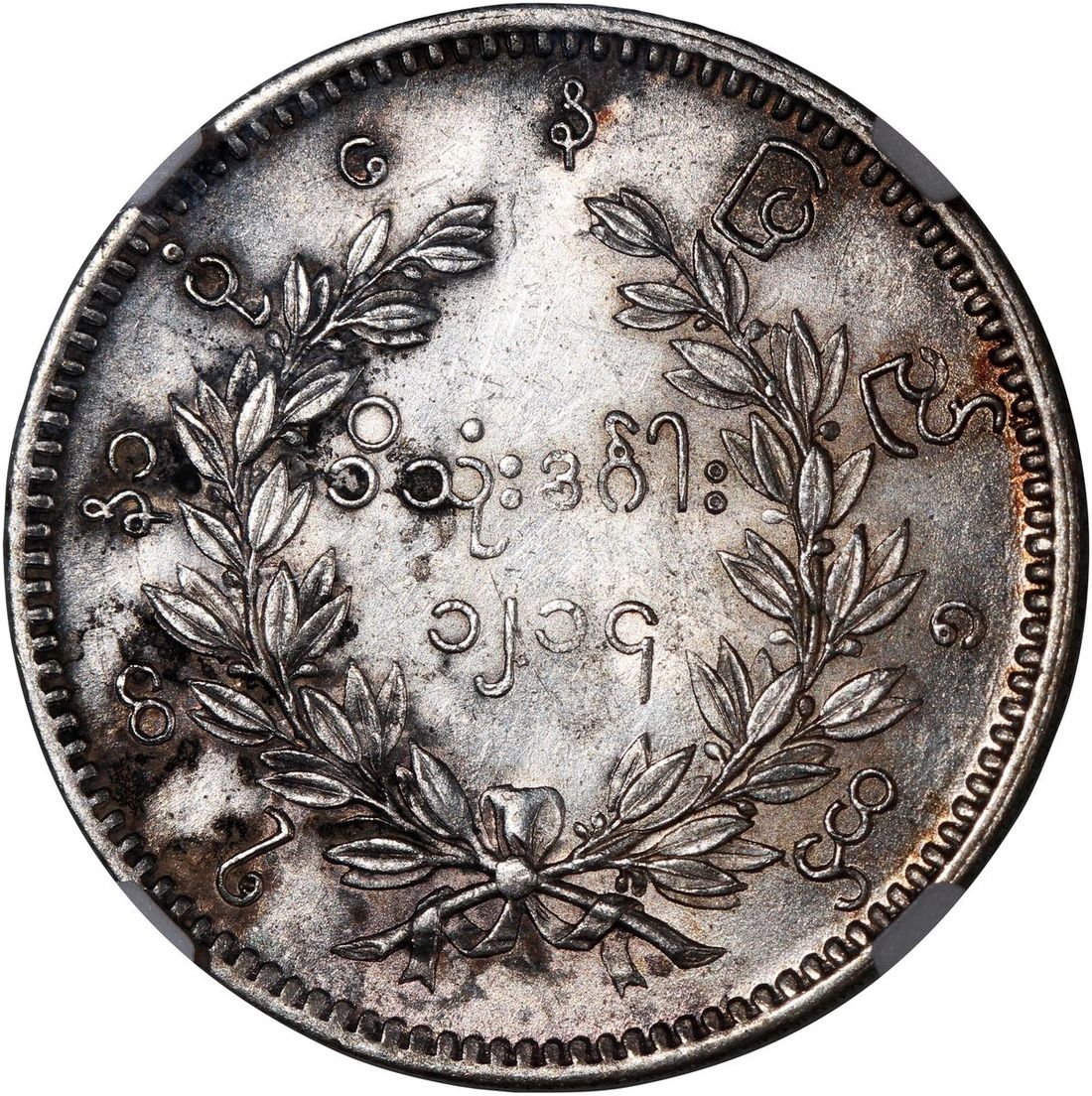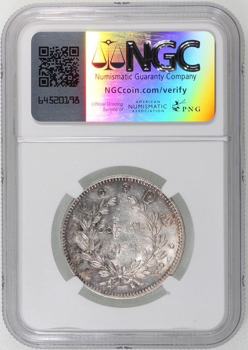 1852年緬甸1元, NGC UNC Details, 有清洗