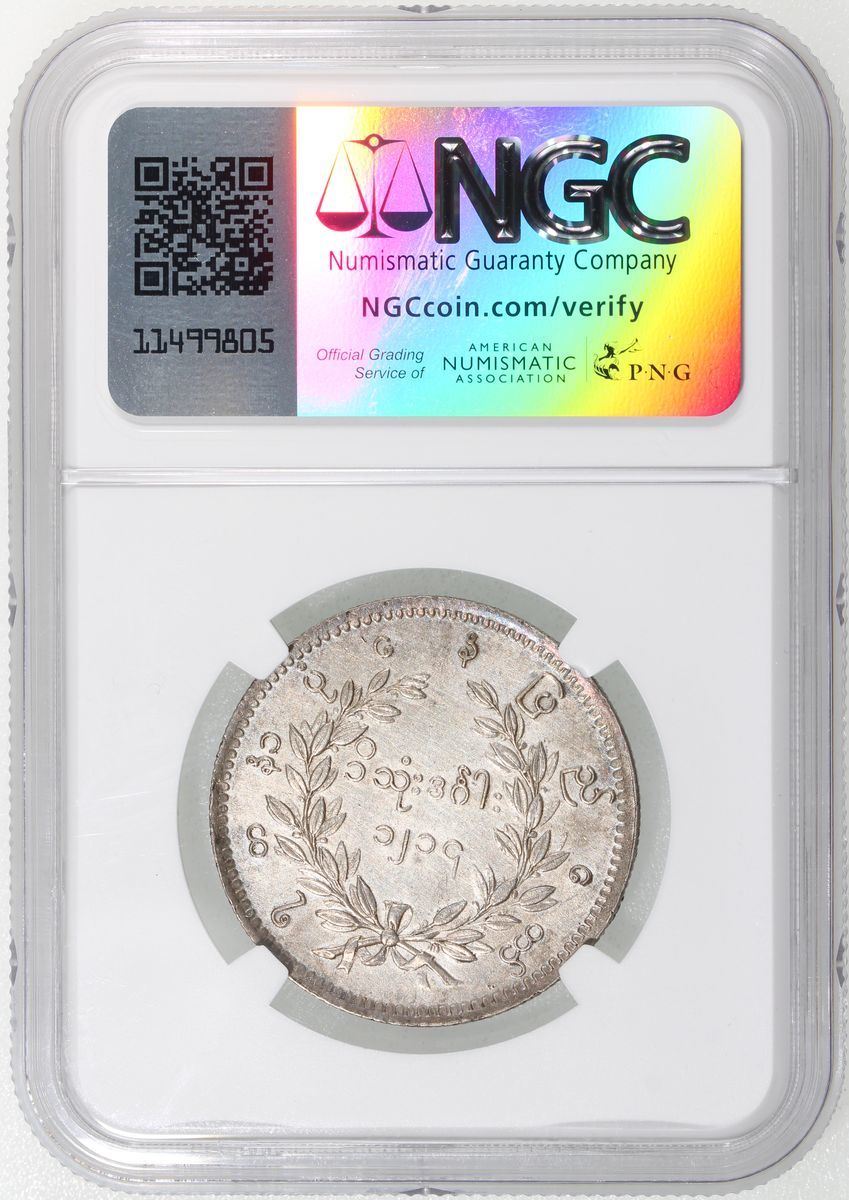 1852年緬甸1元, NGC AU Details, 有清洗