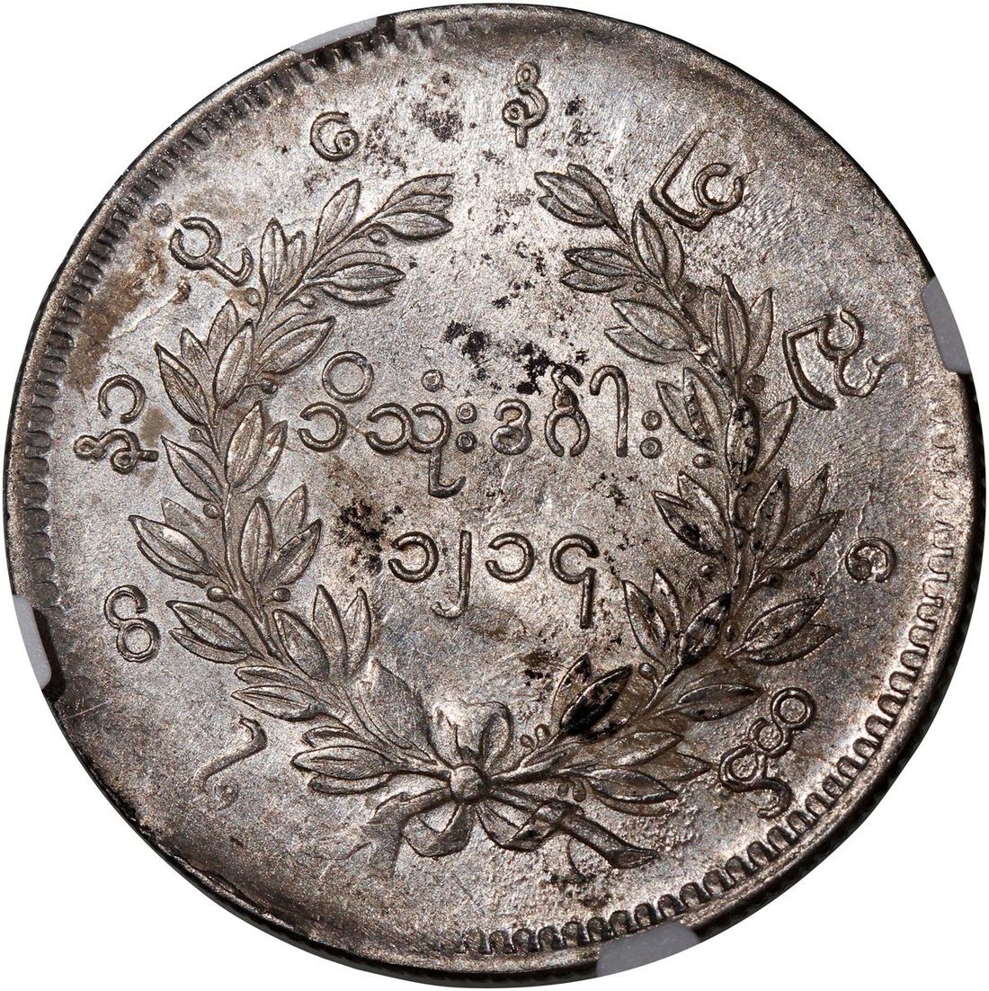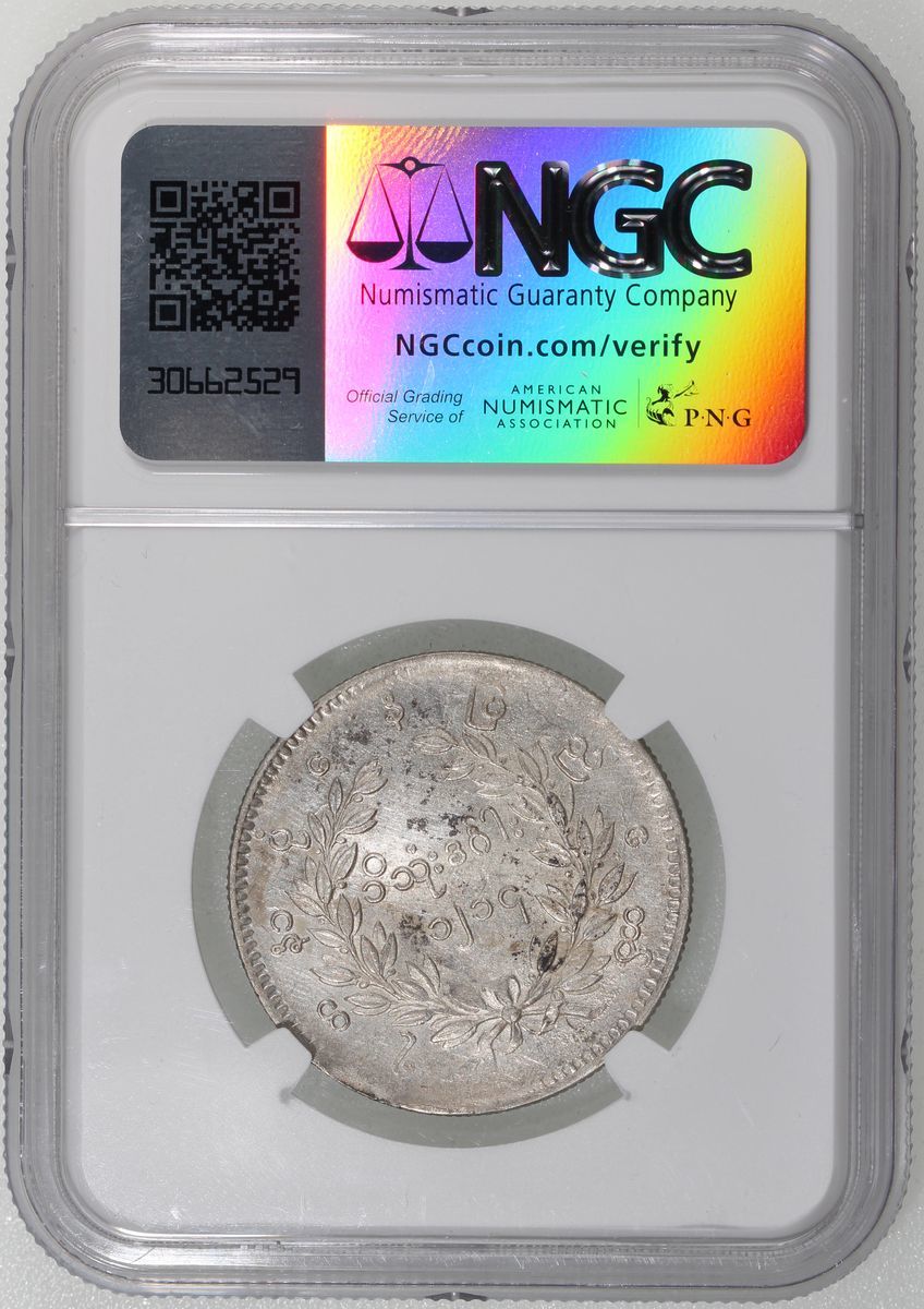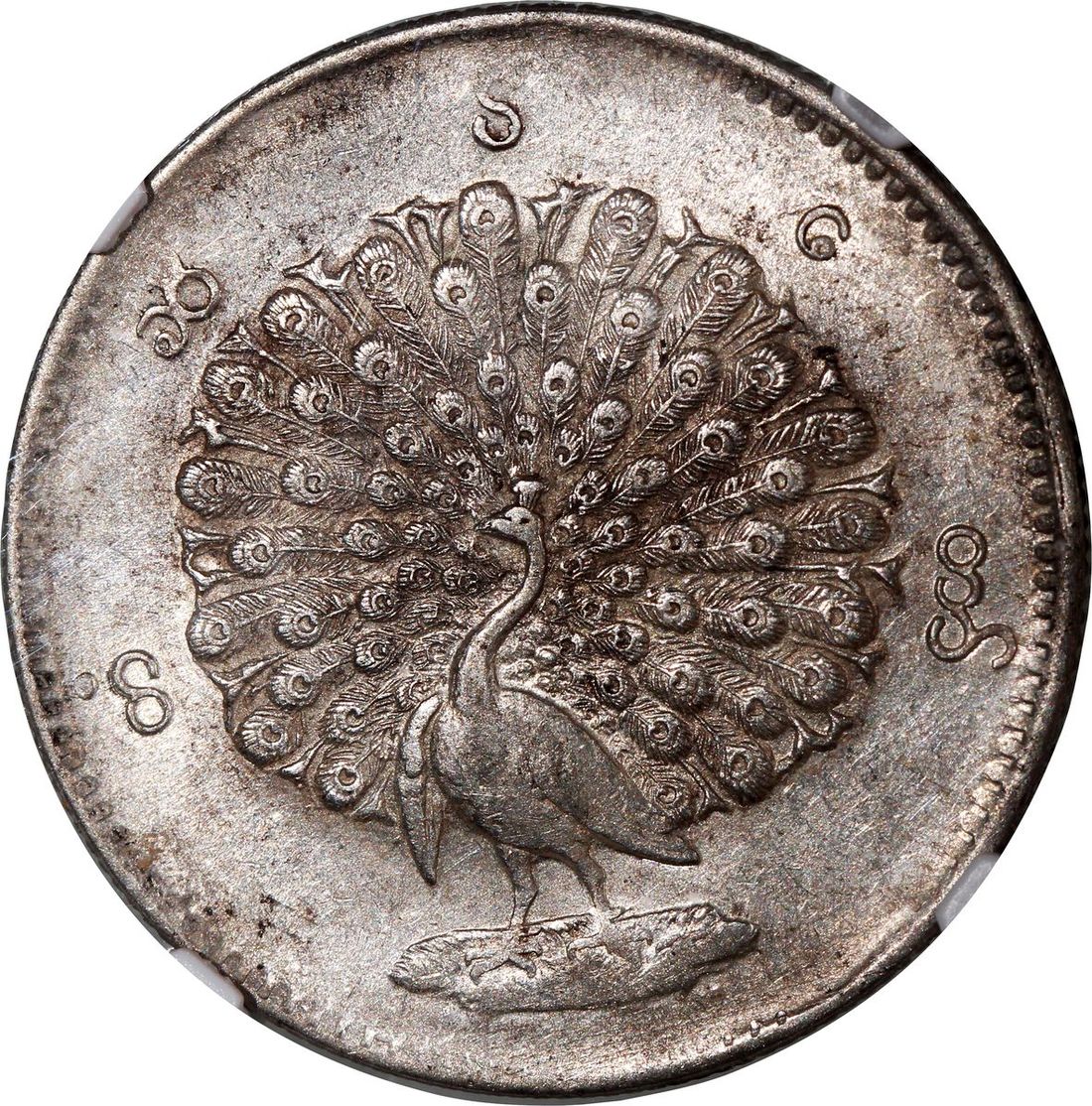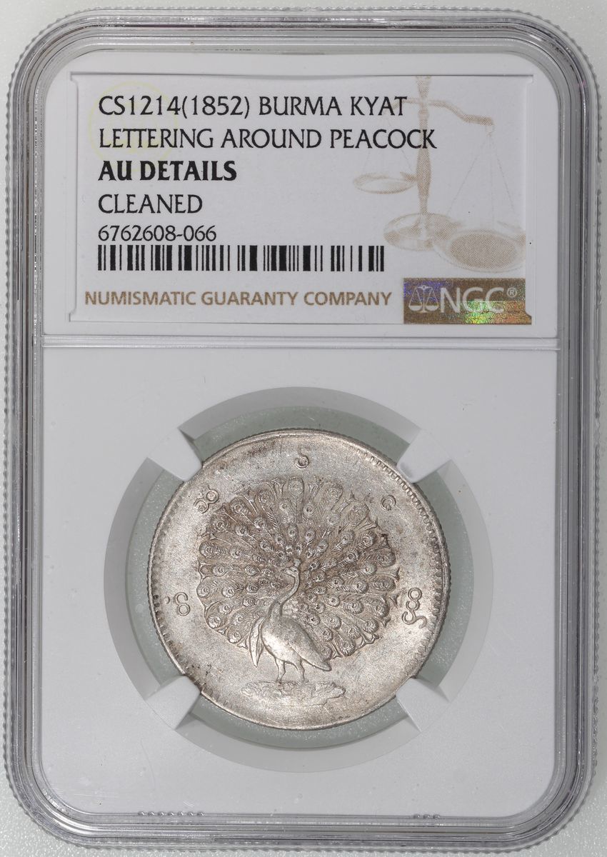 Burma, [NGC AU Details] silver kyat, CS1214 (1852), 'lettering around peacock', cleaned. #6762608-066
