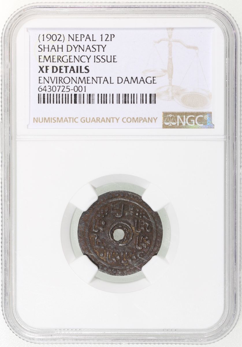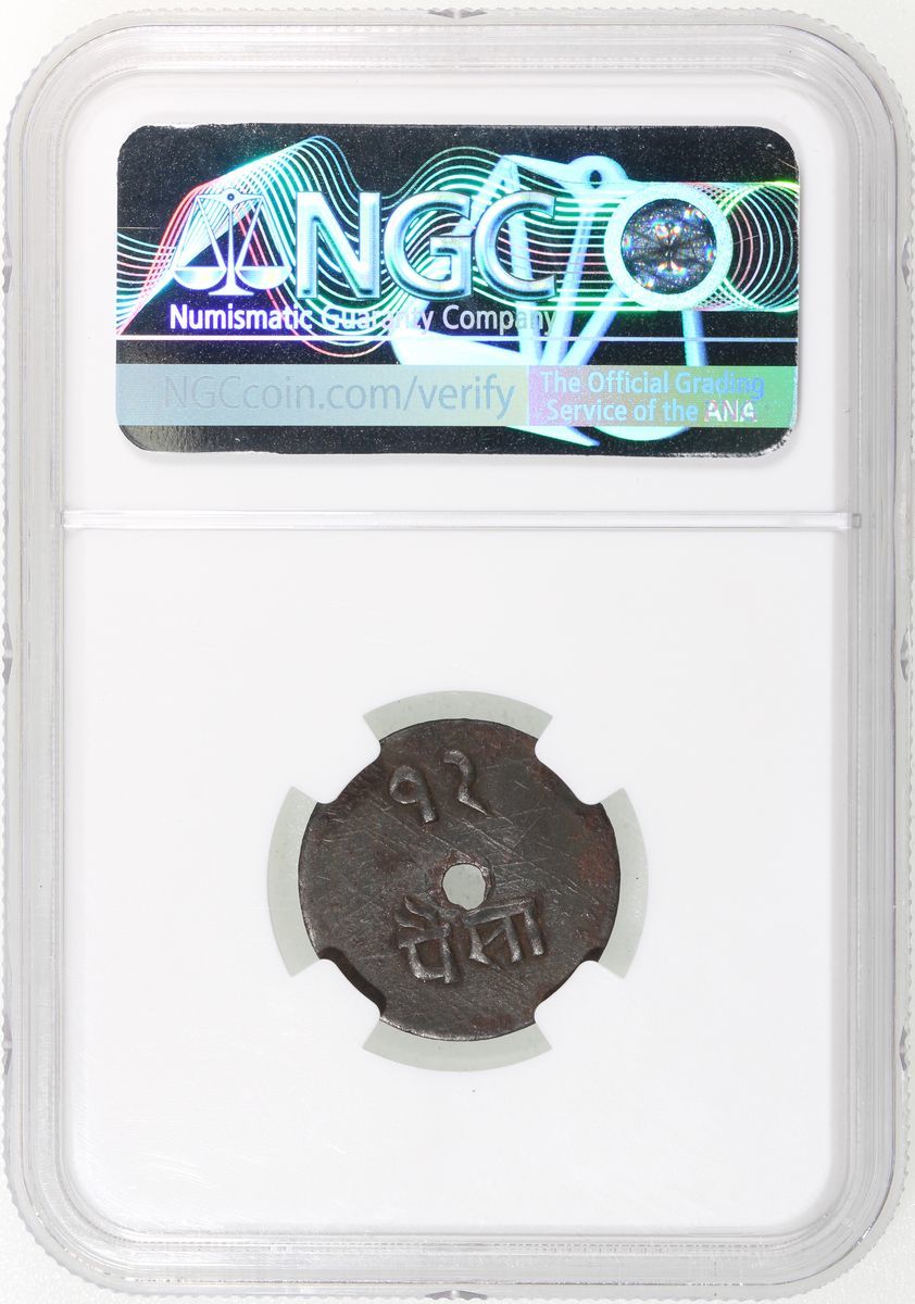 Nepal, Shah Dynasty, [NGC XF Details] iron 12 paisa, 1902, royal palace builders' token coinage, (KM-Tn1, RGV-T9), NGC XF Details (Environmental Damage), cert. #6430725-001, not used for long due to lack of popularity, hence rare