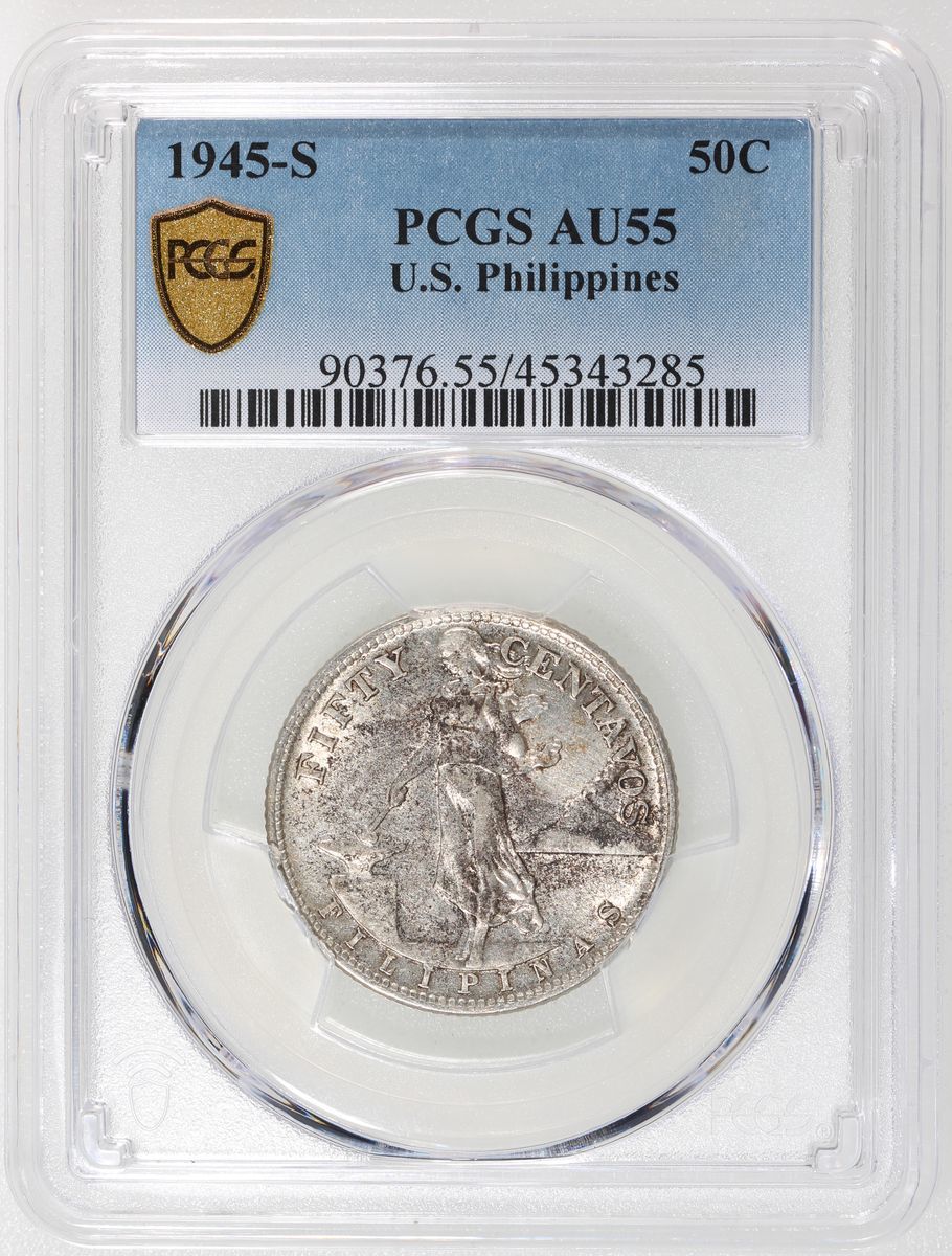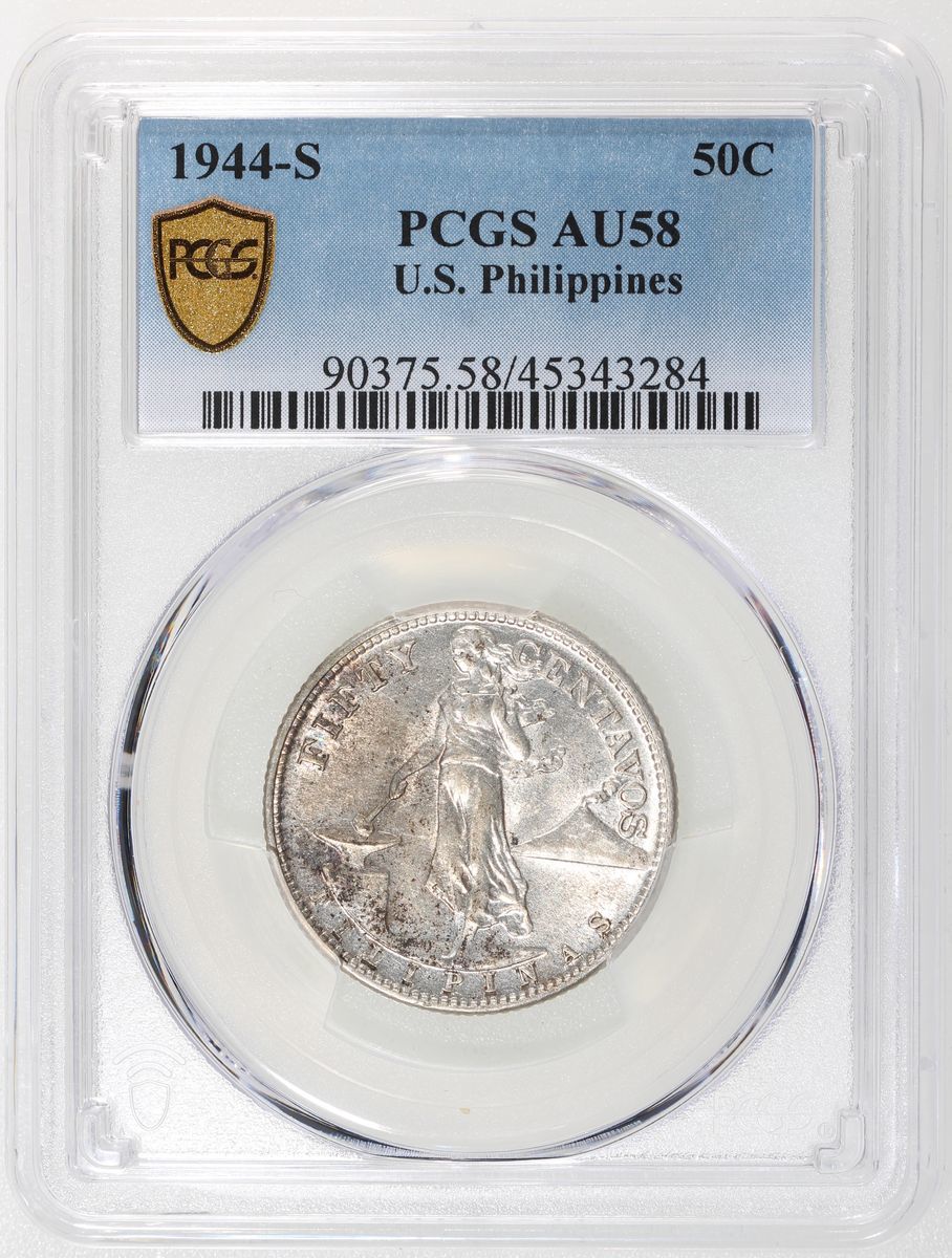 1944-45年菲律賓50仙一組兩枚, 三藩市造幣廠, PCGS AU58, AU55